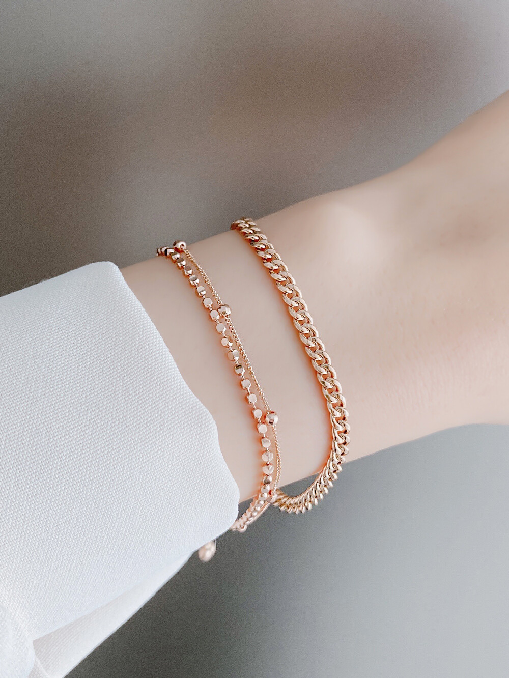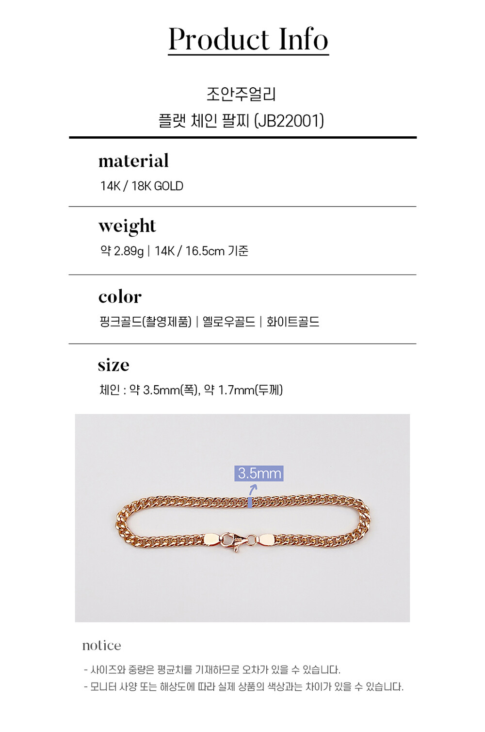 플랫 체인 팔찌 14K / 18K