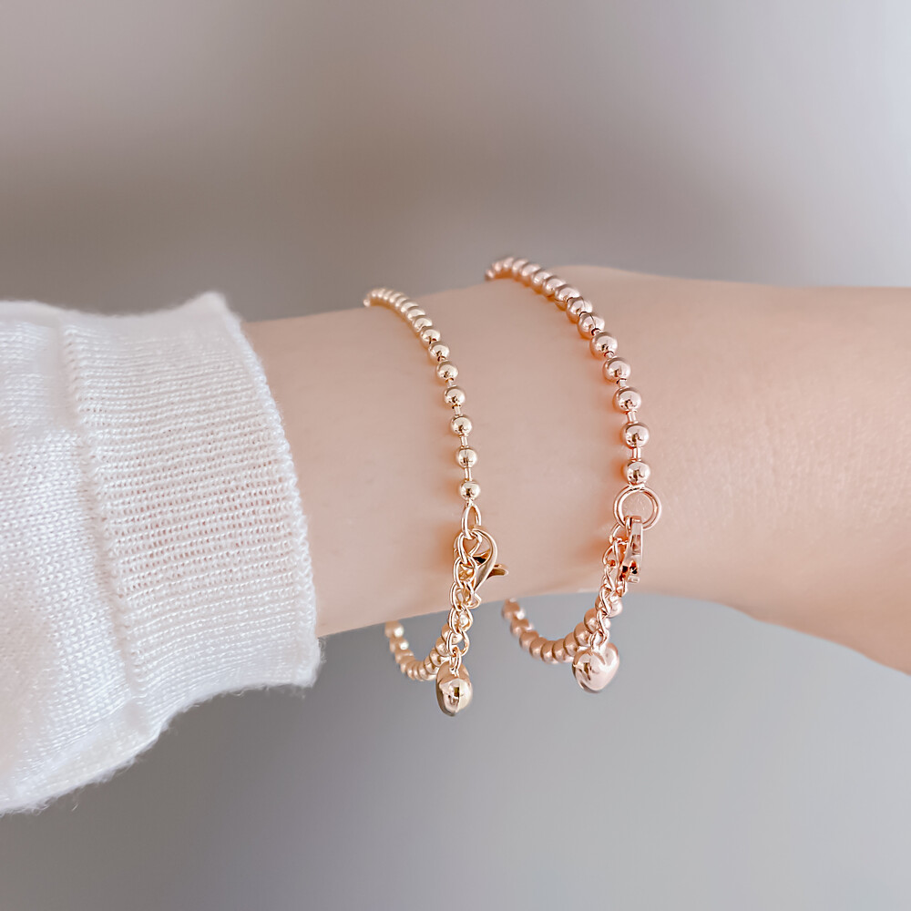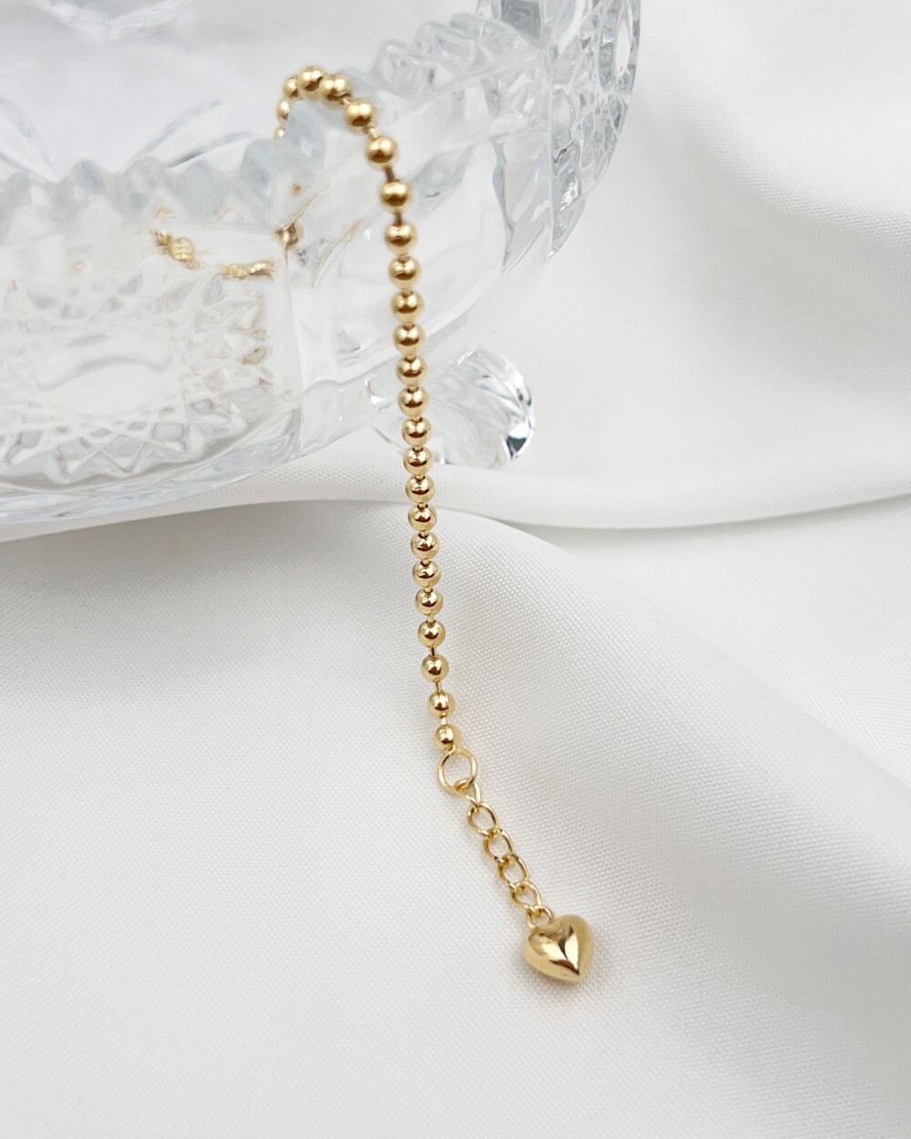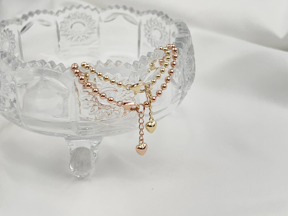 착용 시 팔목으로 흘러내리는 여유체인과 하트가