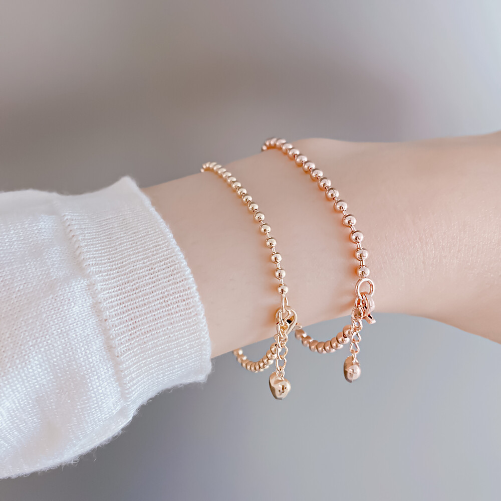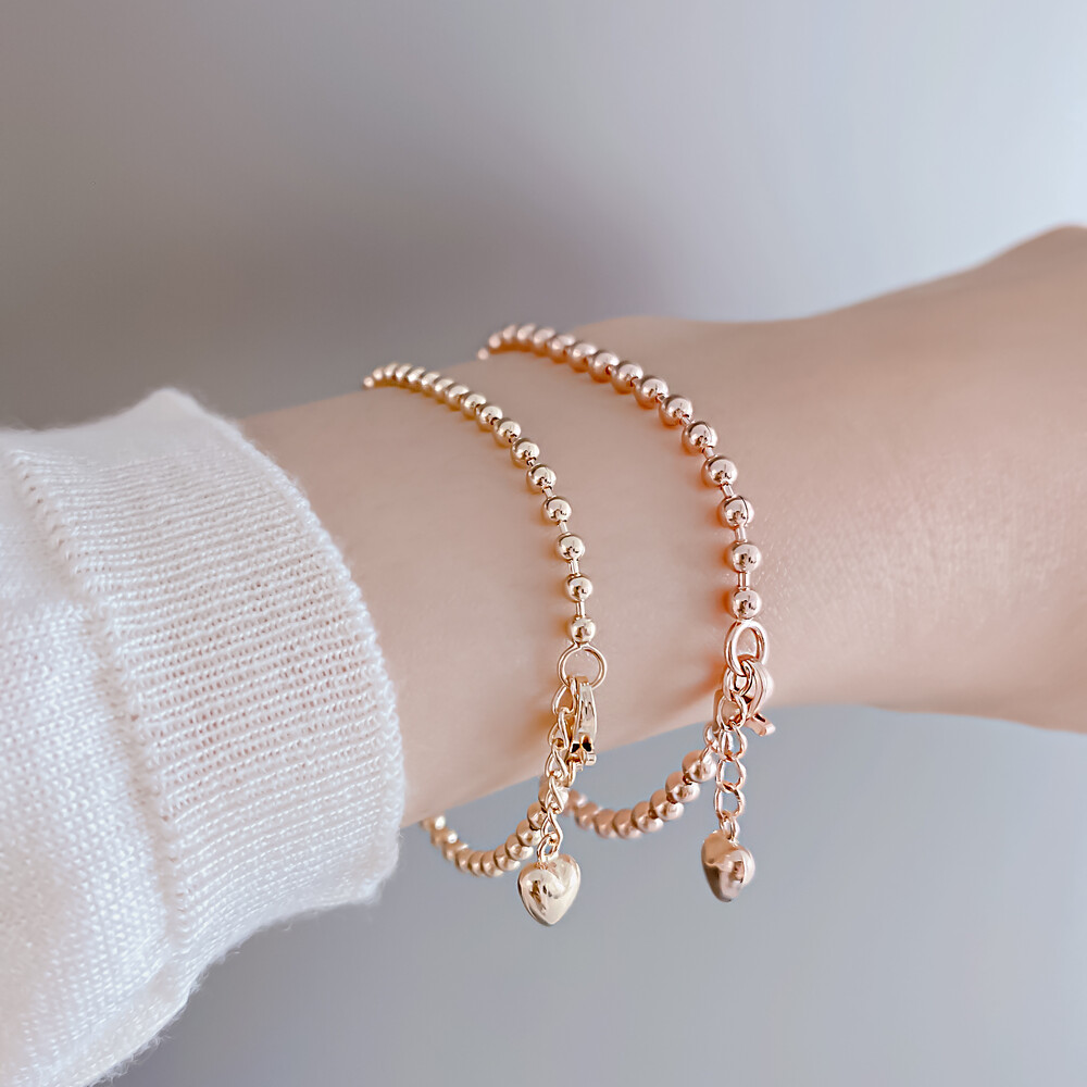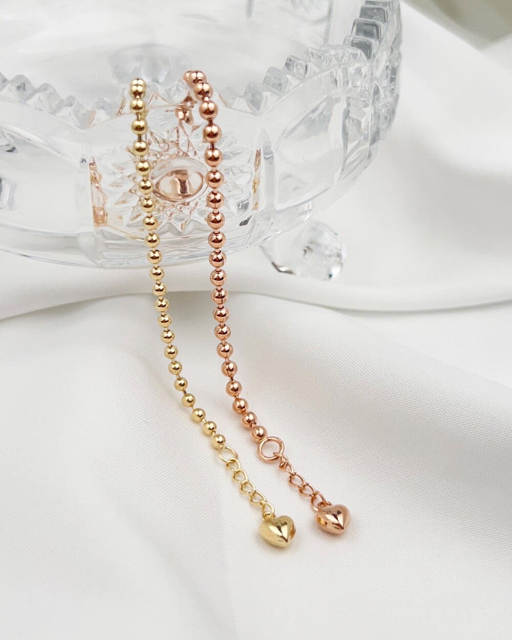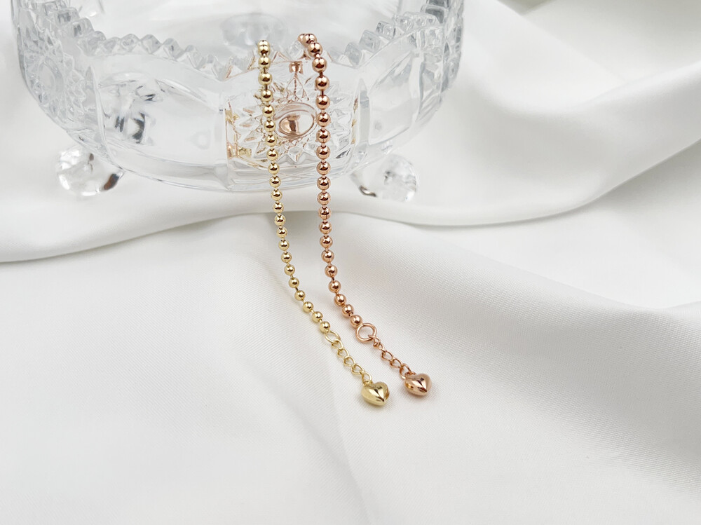 착용 시 팔목으로 흘러내리는 여유체인과 하트가