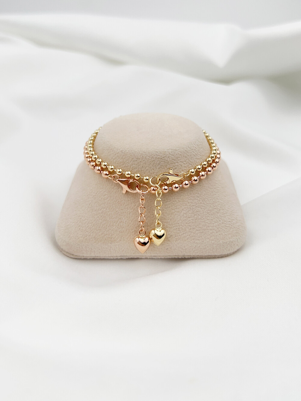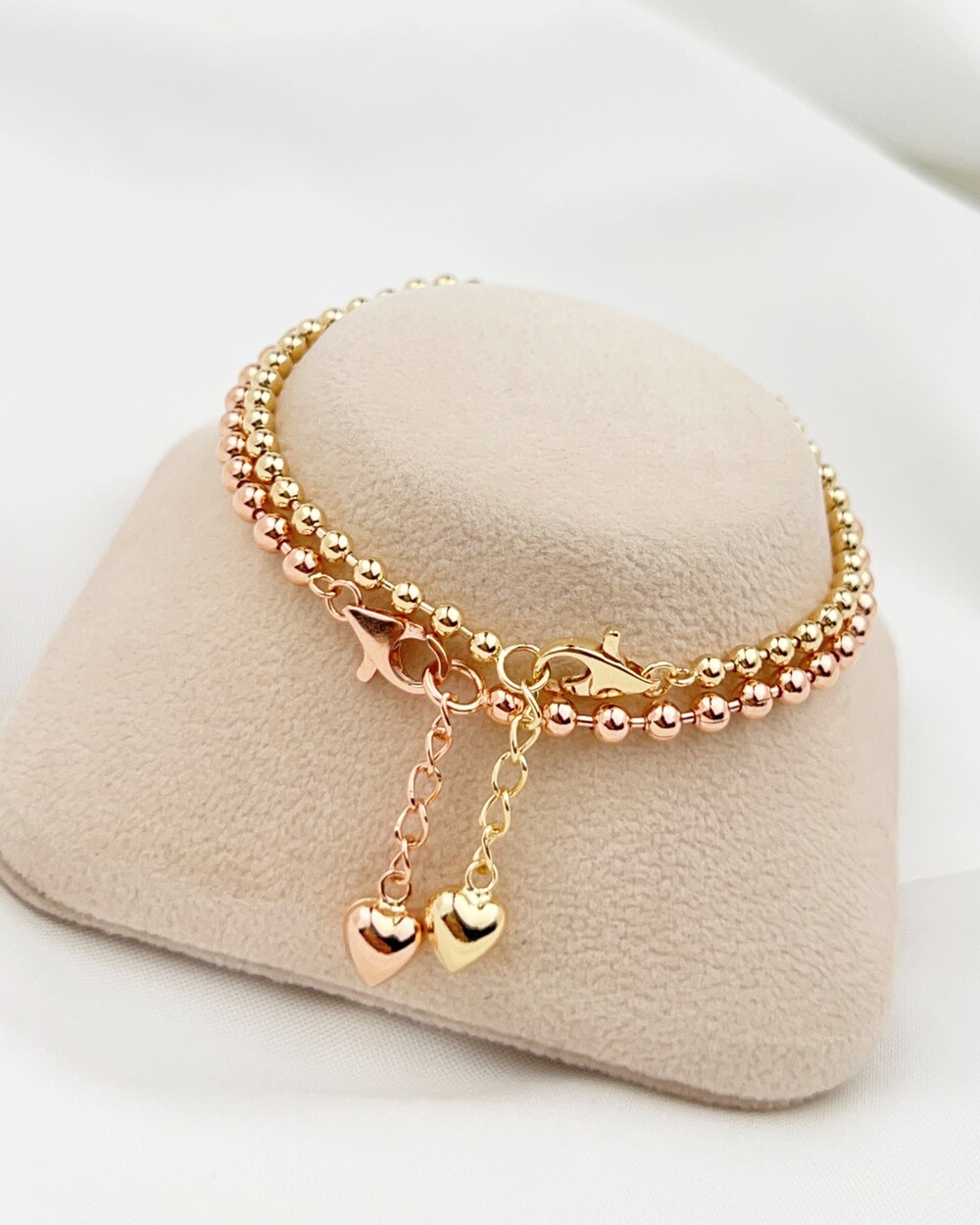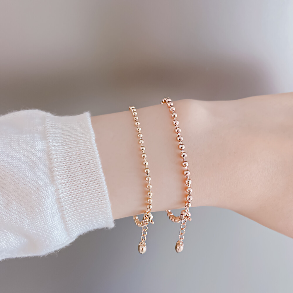 착용 시 팔목으로 흘러내리는 여유체인과 하트가