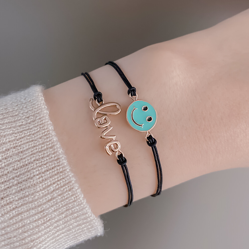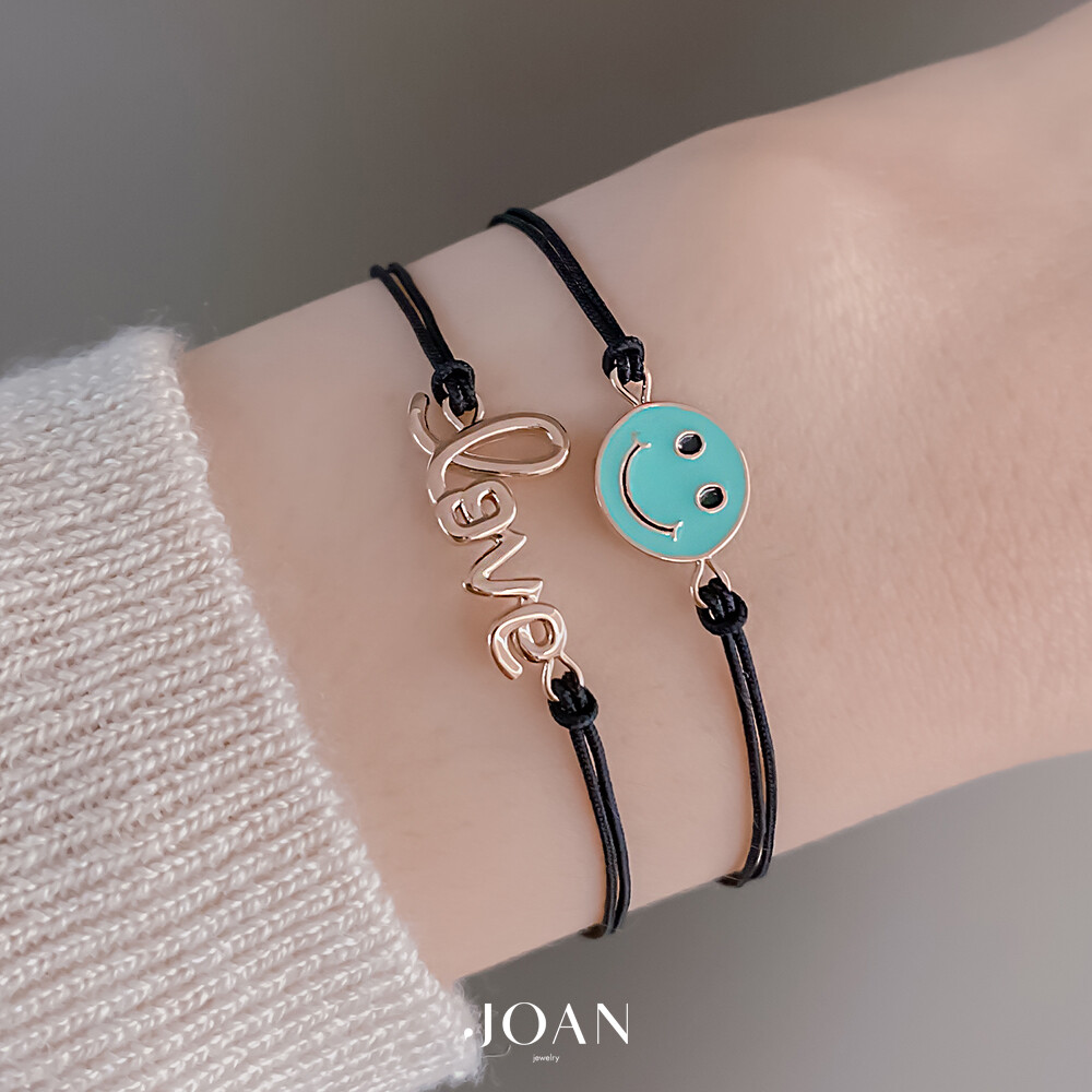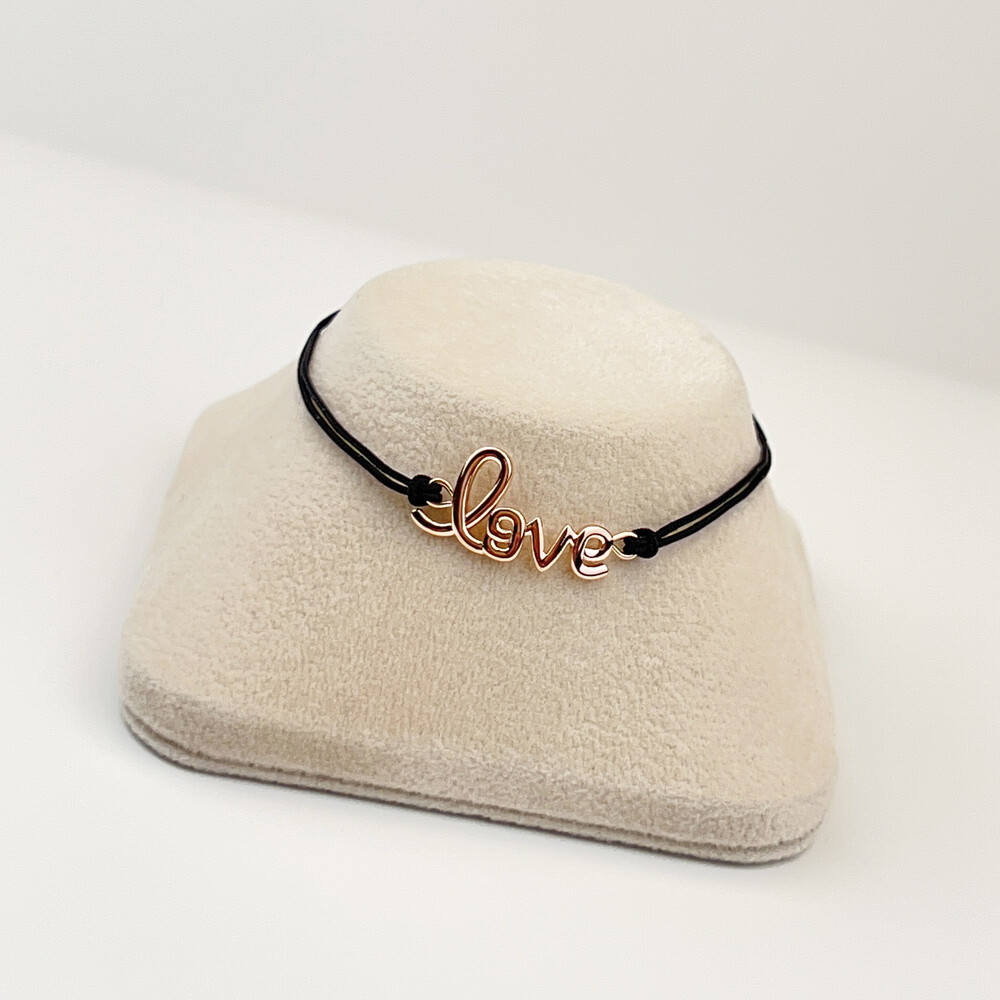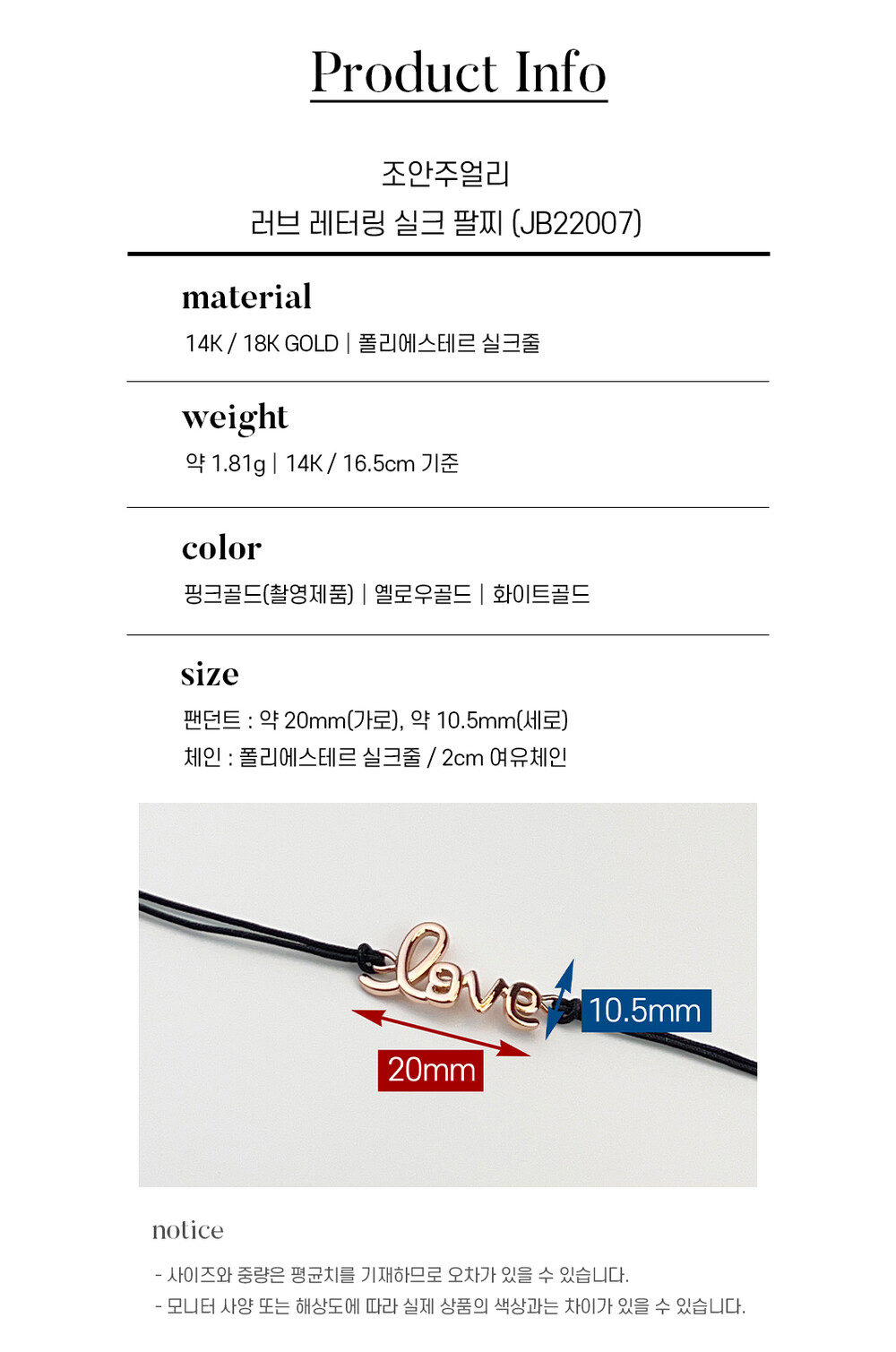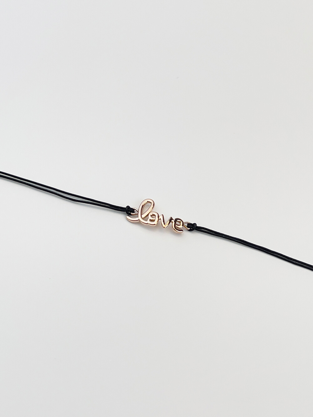 Love 레터링이 포인트인 실크 팔찌입니다.