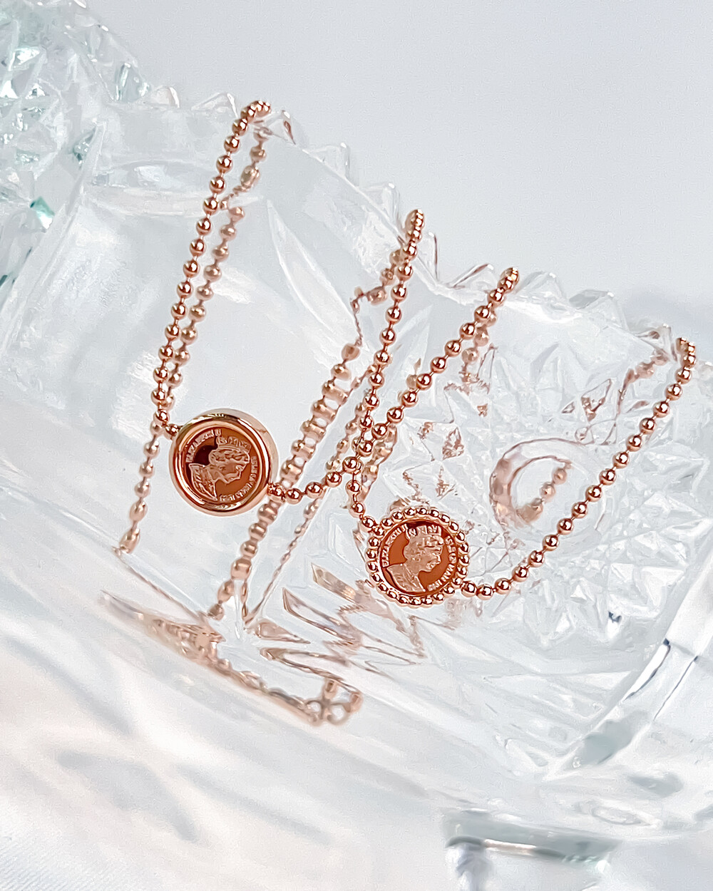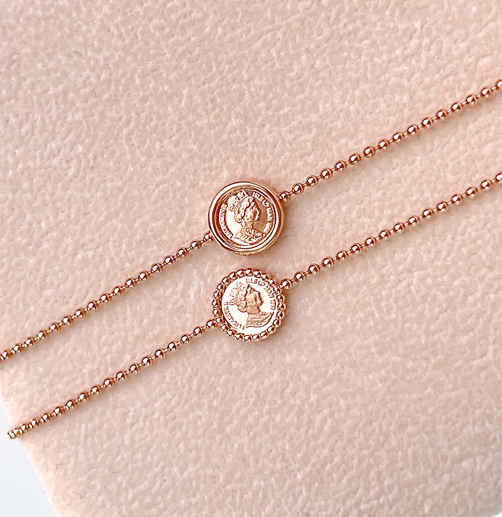 볼 형태의 팔찌 라인에 중앙 엘리자베스 여왕의 얼굴이