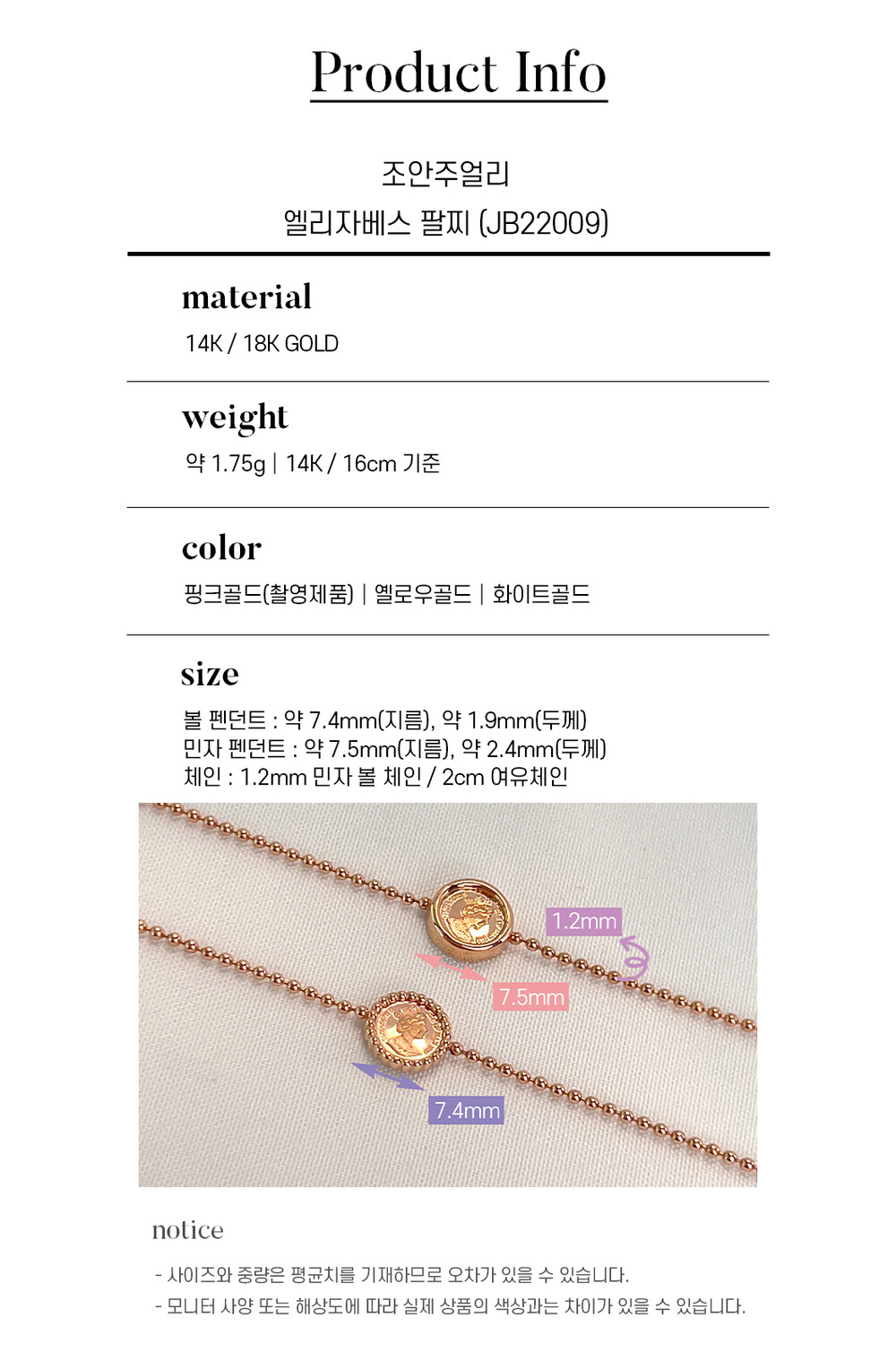조안주얼리의 제품은 14k(58.5%), 18k(75%) 금 함량을 준수하여 제작되며