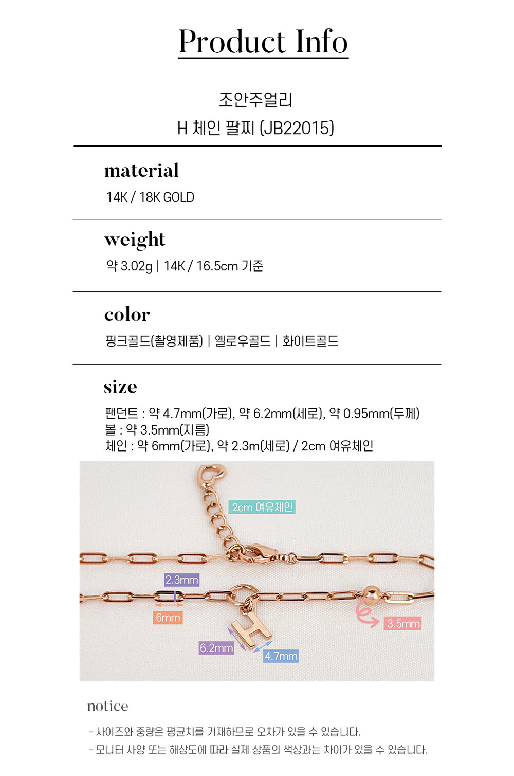 팔찌 끝부분 여유체인이 2cm 가량 있어
