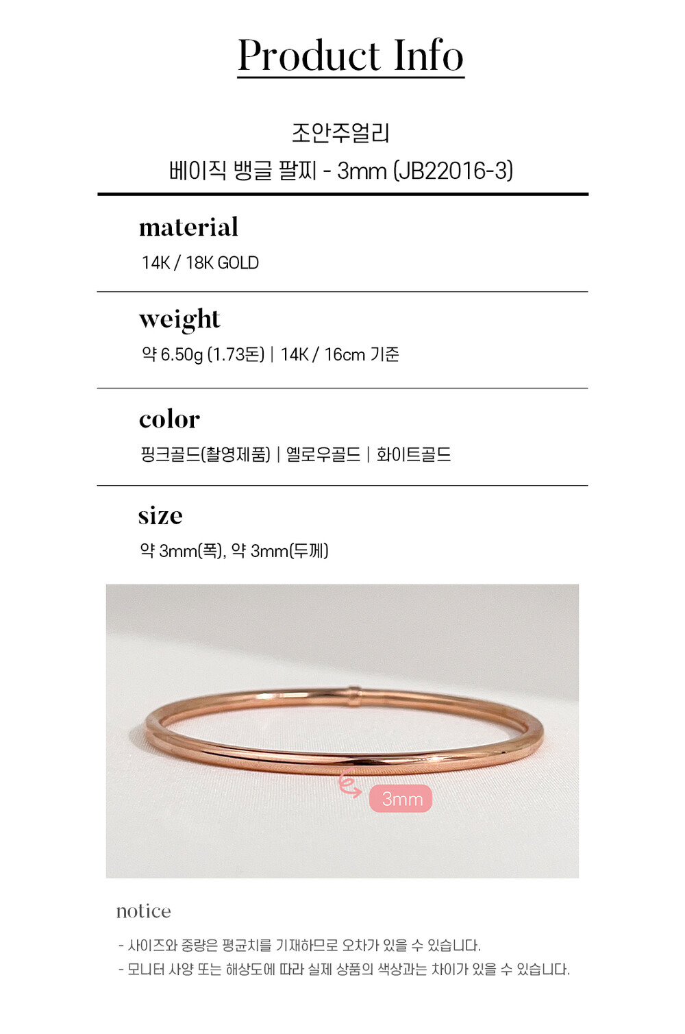 베이직 뱅글 팔찌 - 3mm 14K / 18K