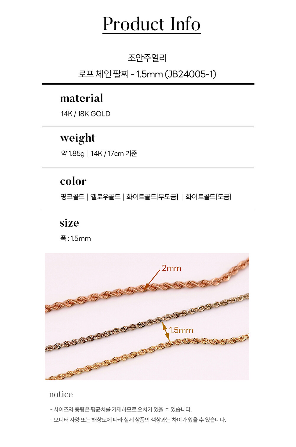 로프 체인 팔찌 - 1.5mm 14K / 18K