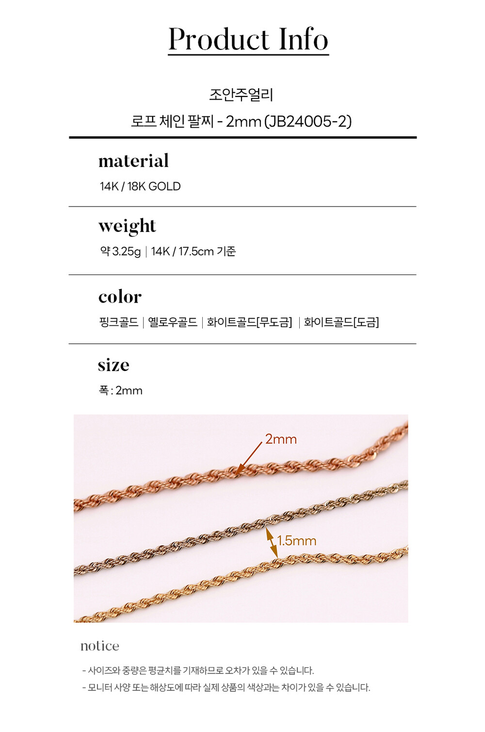 로프 체인 팔찌 - 2.0mm 14K / 18K