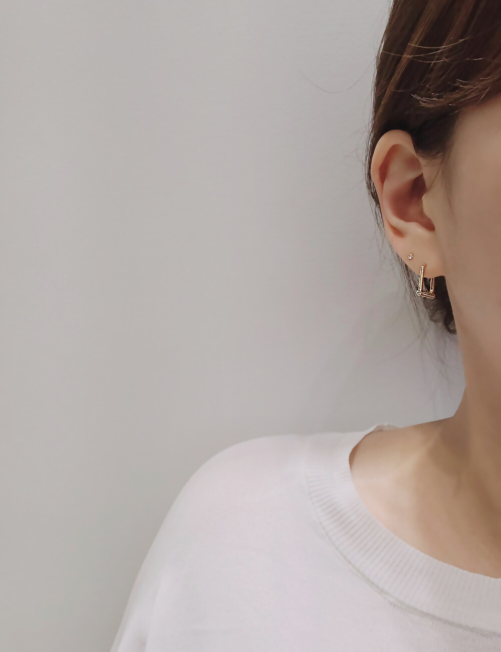 양 귀걸이의 한쪽 면에만 큐빅이 들어가있기에
