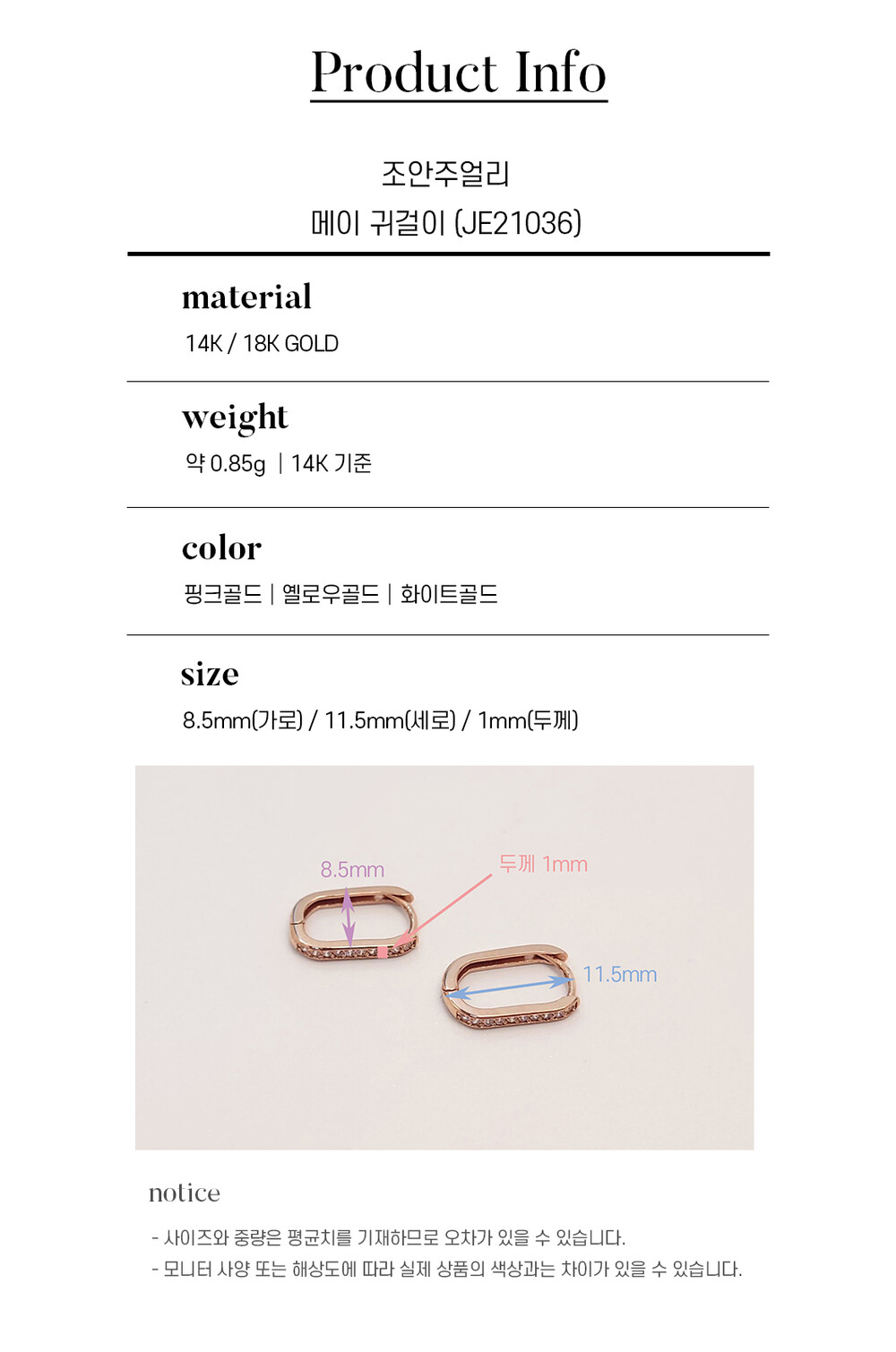 14k(58.5%), 18k(75%) 금 함량을 준수하여 제작되며