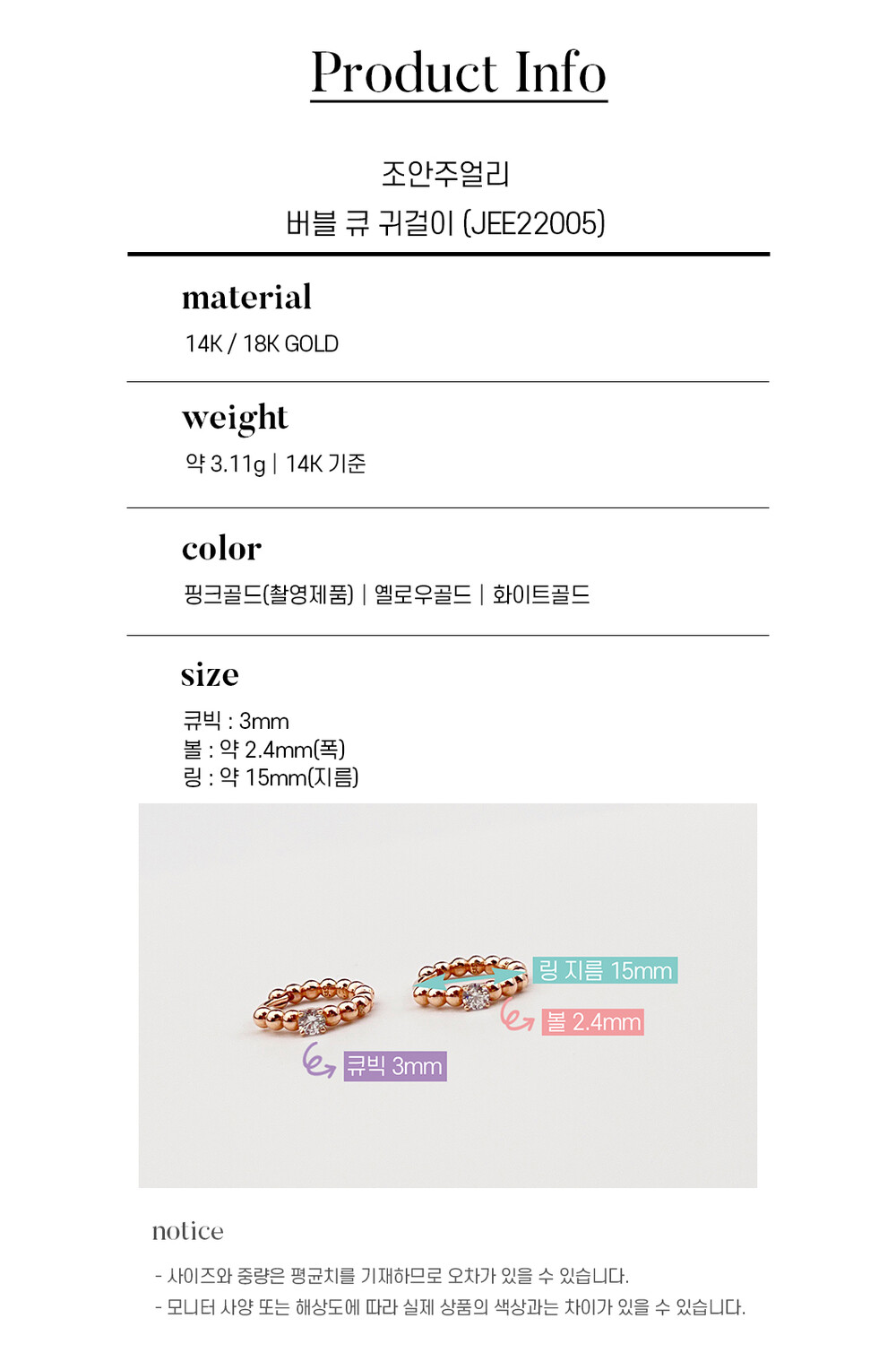 14k(58.5%), 18k(75%) 금 함량을 준수하여 제작되며