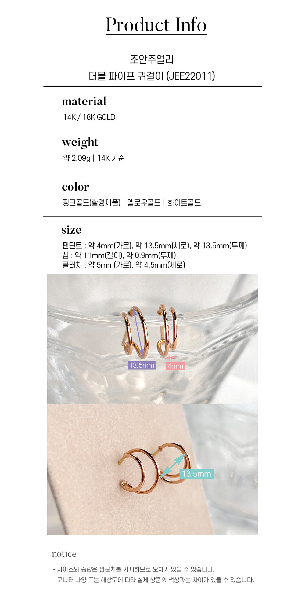 14k(58.5%), 18k(75%) 금 함량을 준수하여 제작되며