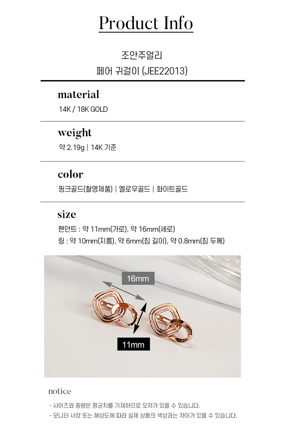 14k(58.5%), 18k(75%) 금 함량을 준수하여 제작되며