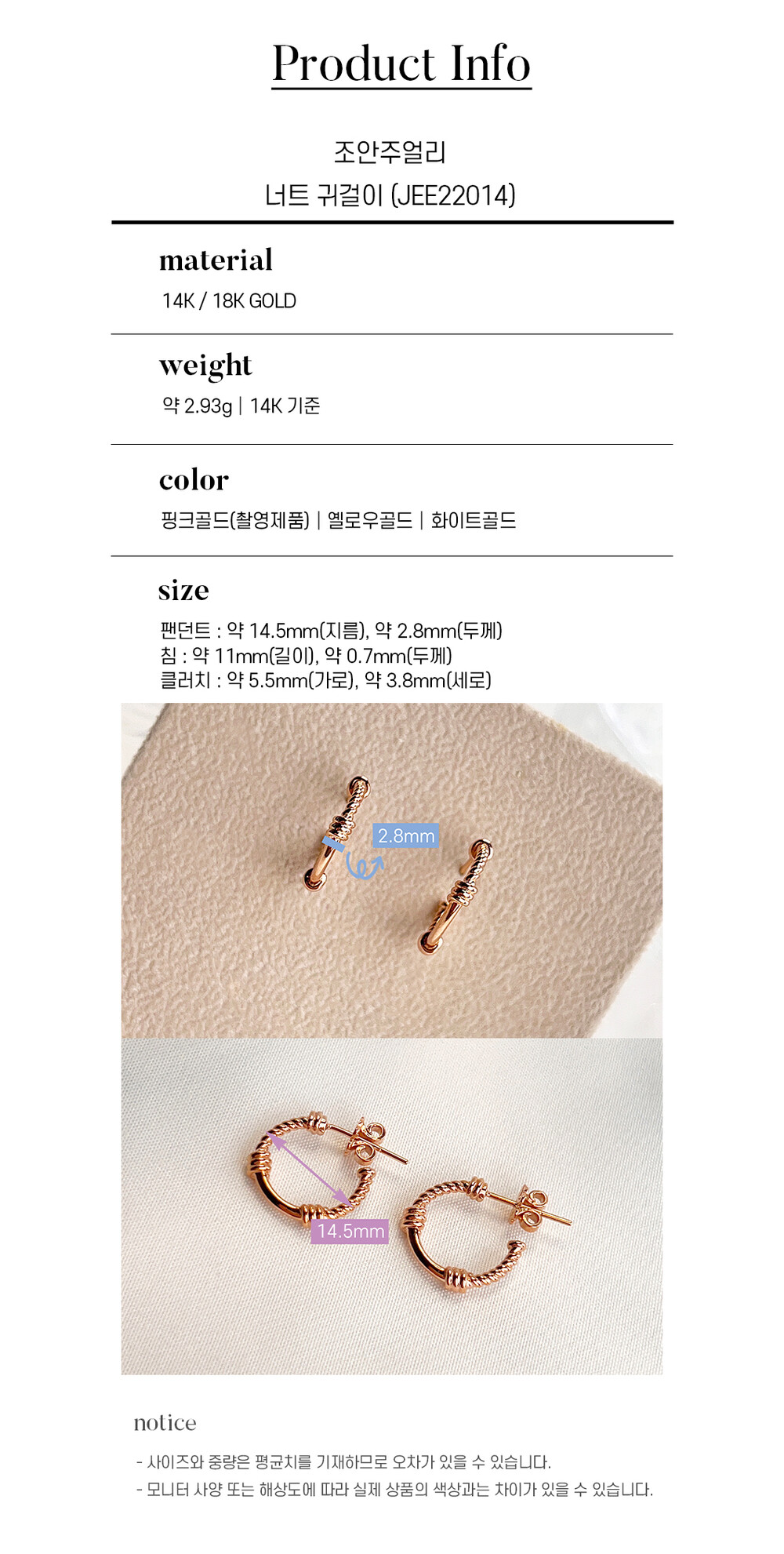 14k(58.5%), 18k(75%) 금 함량을 준수하여 제작되며
