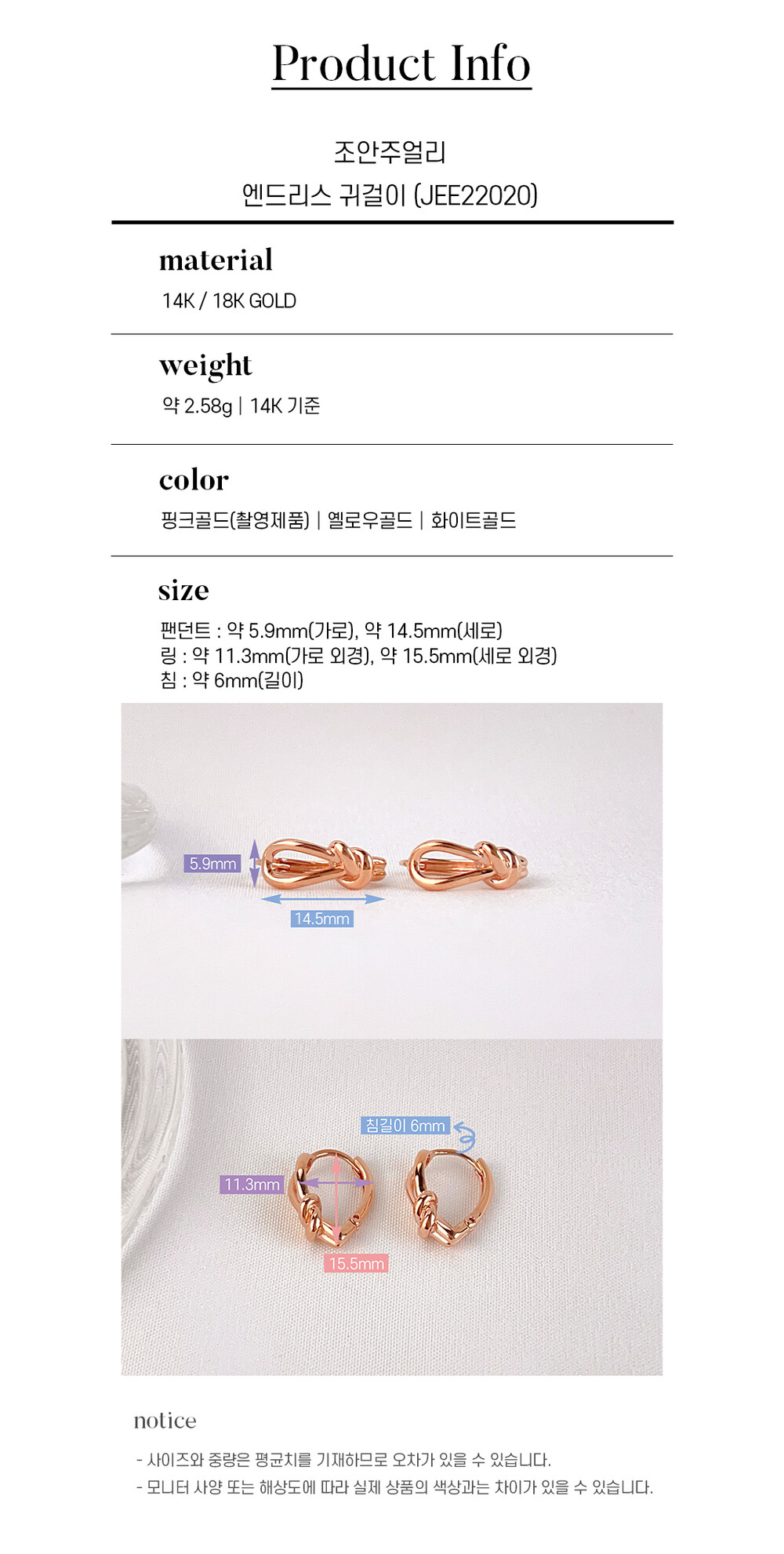 14k(58.5%), 18k(75%) 금 함량을 준수하여 제작되며