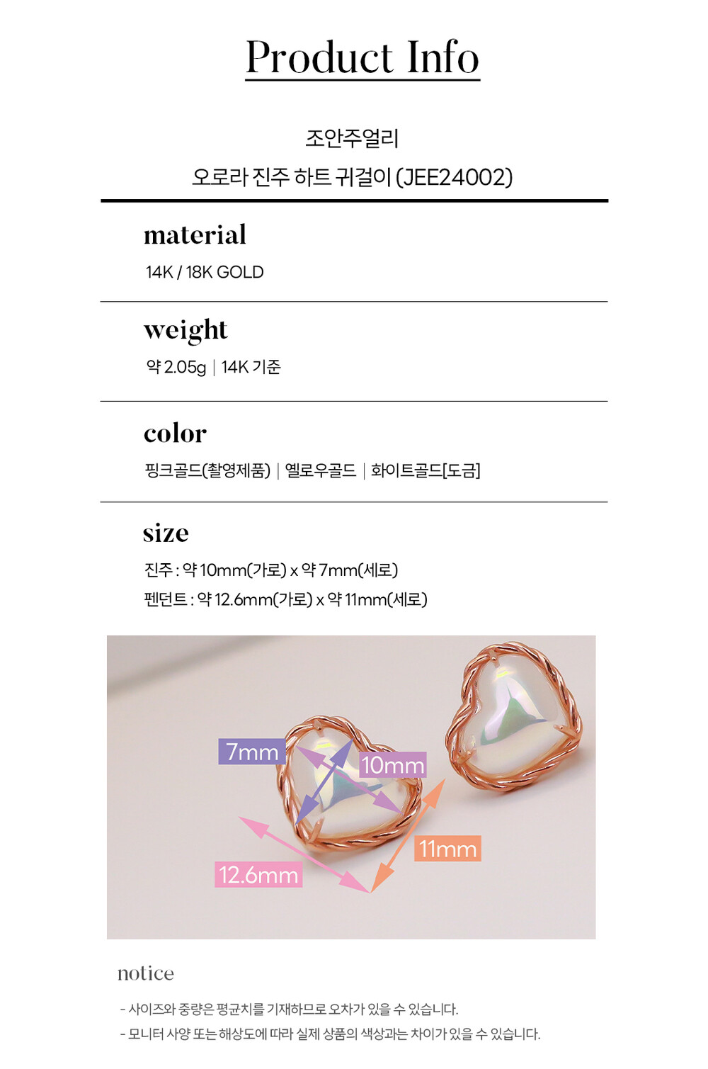 14k(58.5%), 18k(75%) 금 함량을 준수하여 제작되며