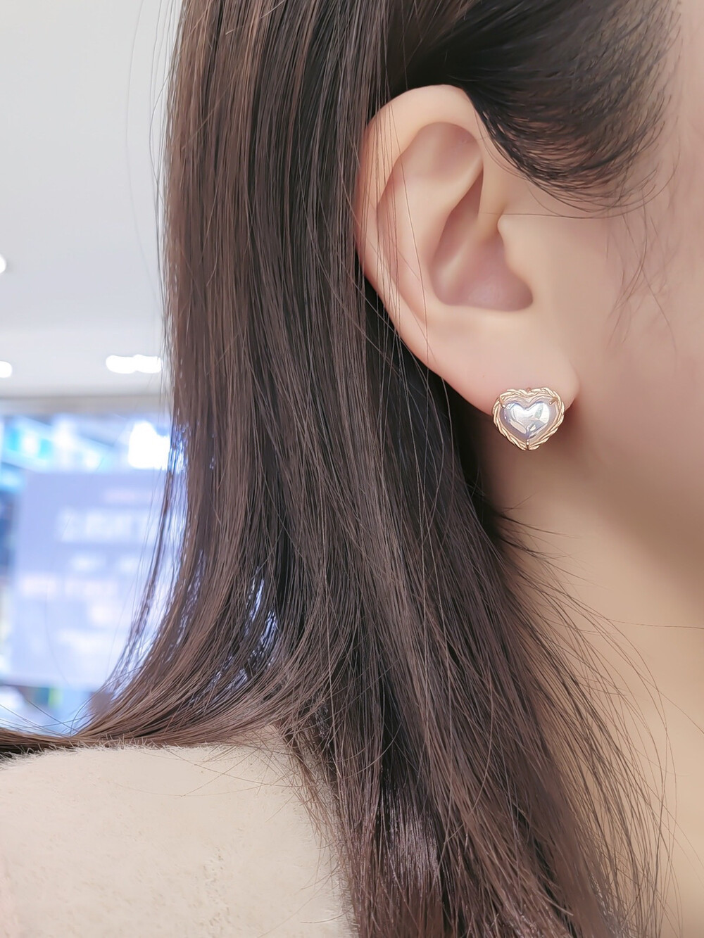 오로라 진주 하트 귀걸이 입니다