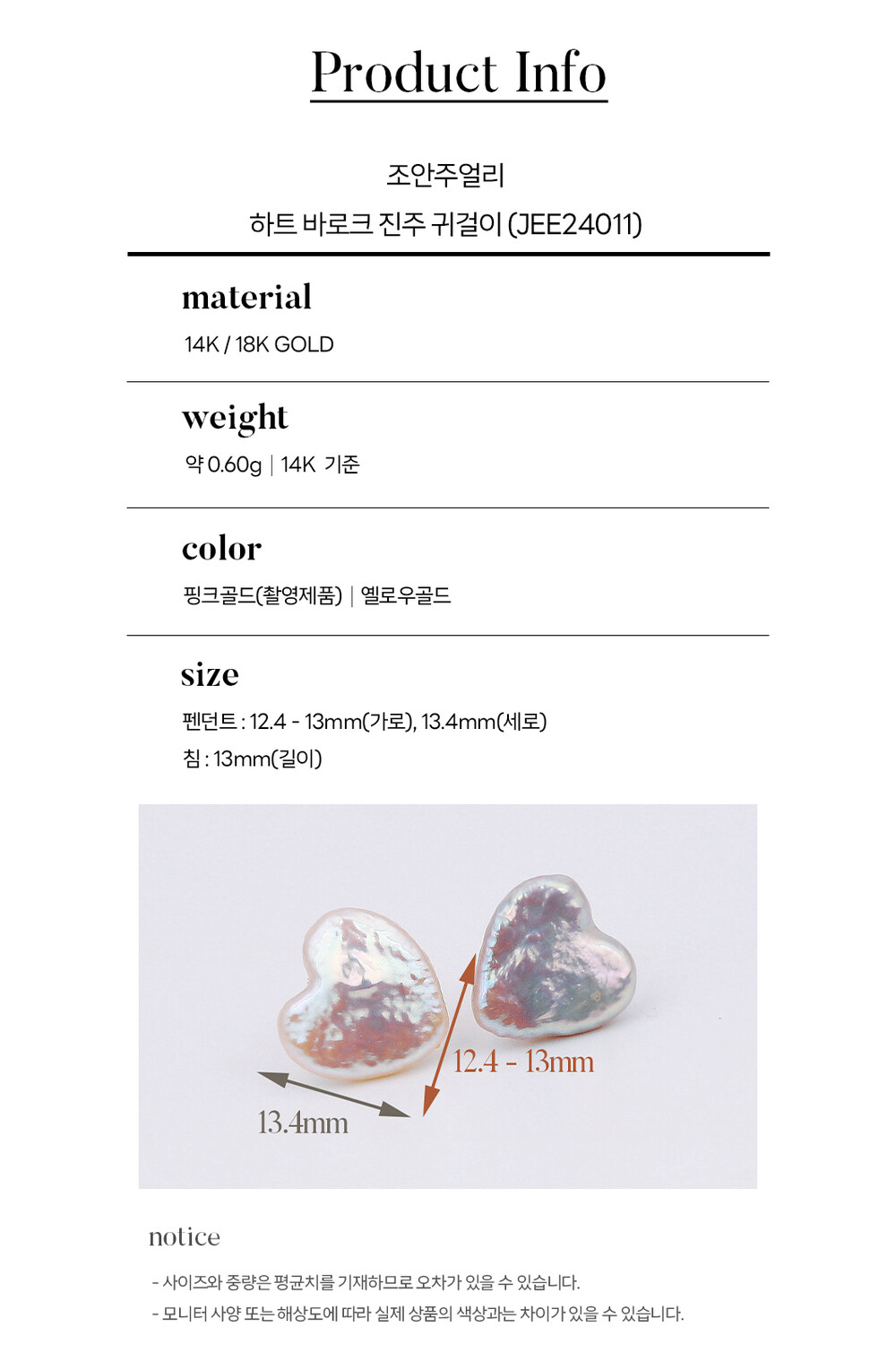 14k(58.5%), 18k(75%) 금 함량을 준수하여 제작되며