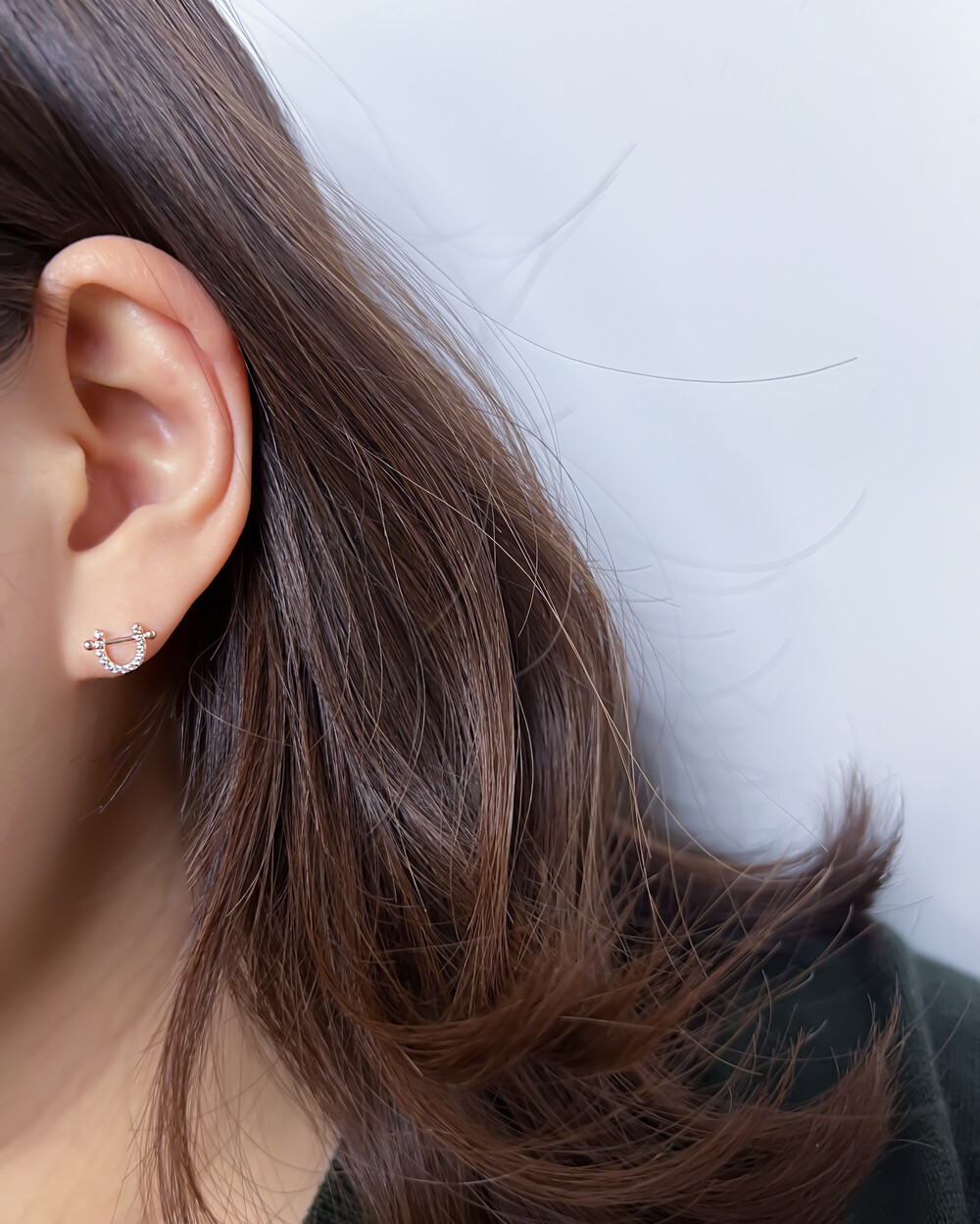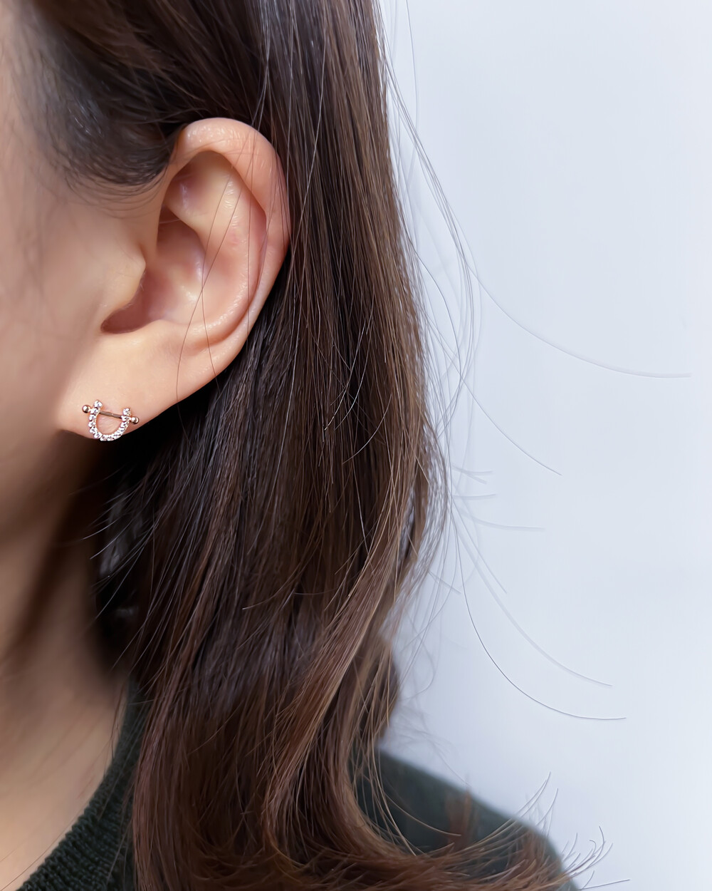 깔끔하고 단정한 느낌을 주는 피어싱입니다.
