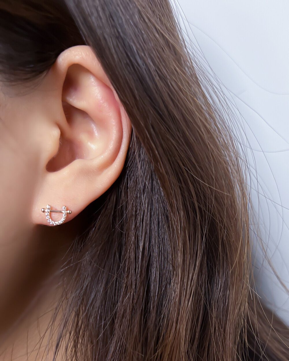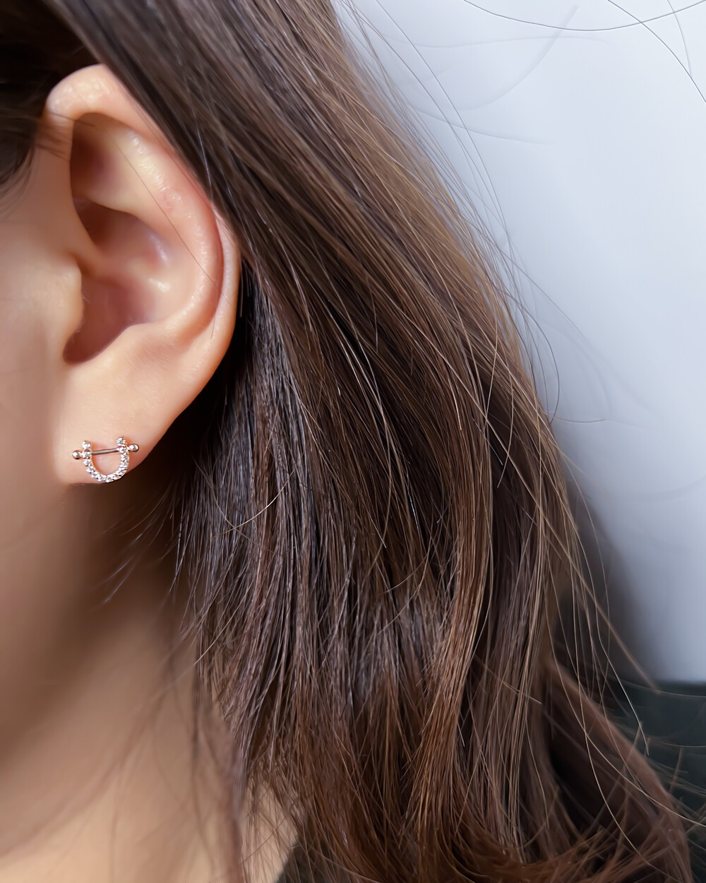 말발굽 모양의 피어싱으로
