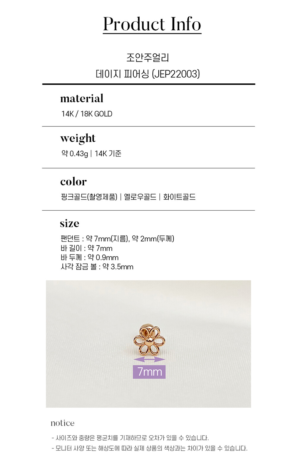 14k(58.5%), 18k(75%) 금 함량을 준수하여 제작되며