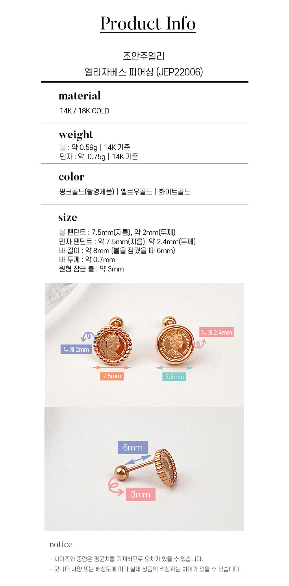 14k(58.5%), 18k(75%) 금 함량을 준수하여 제작되며