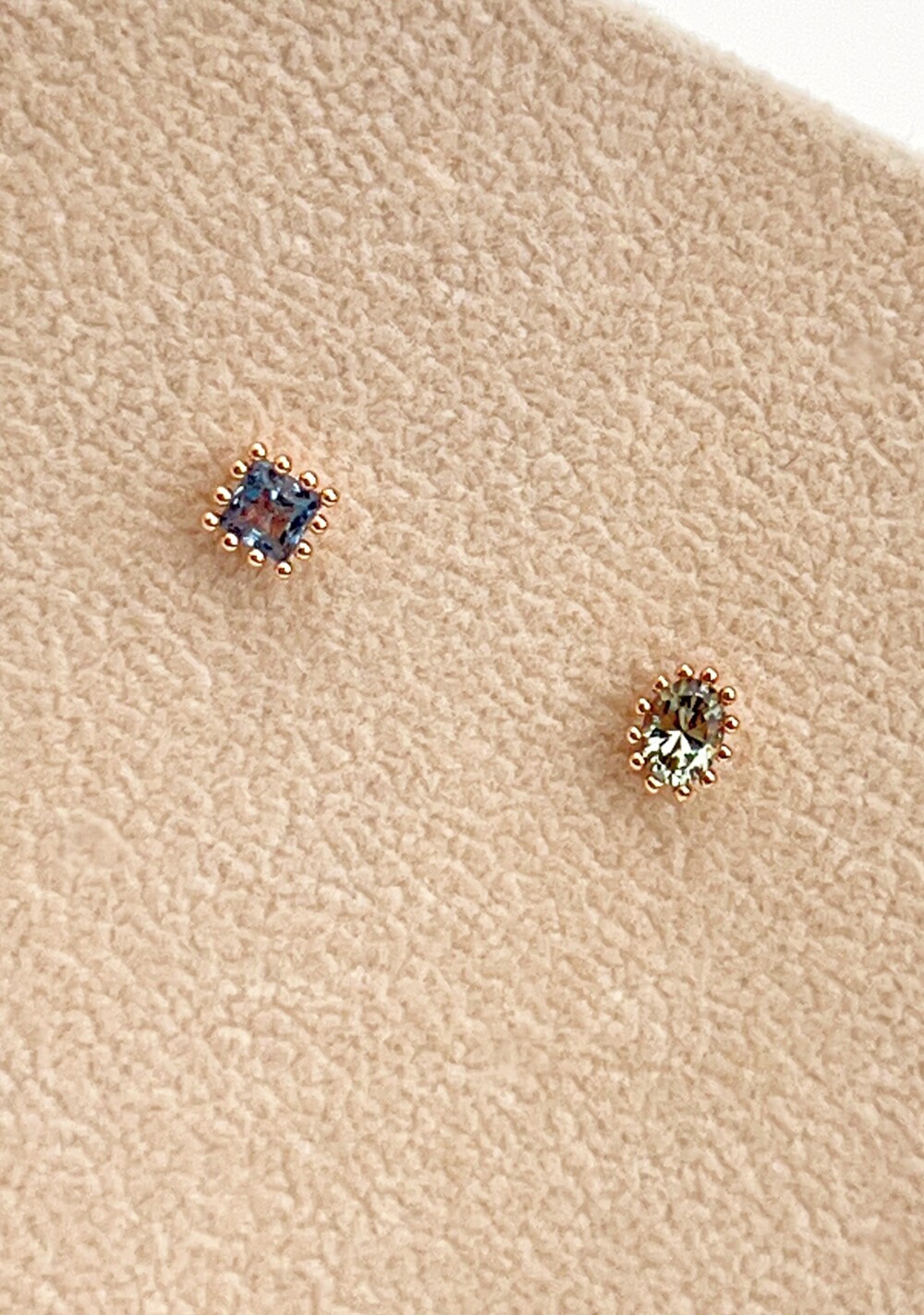 왼쪽은 그린토르말린(녹색 타원) /오른쪽은 런던블루토파즈(청색 네모)