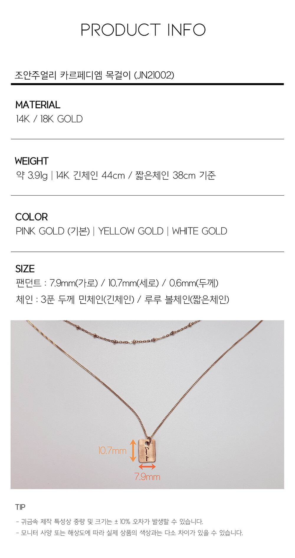 해당 제품은 38+44cm(짧은체인+긴체인)를 착용하였습니다.