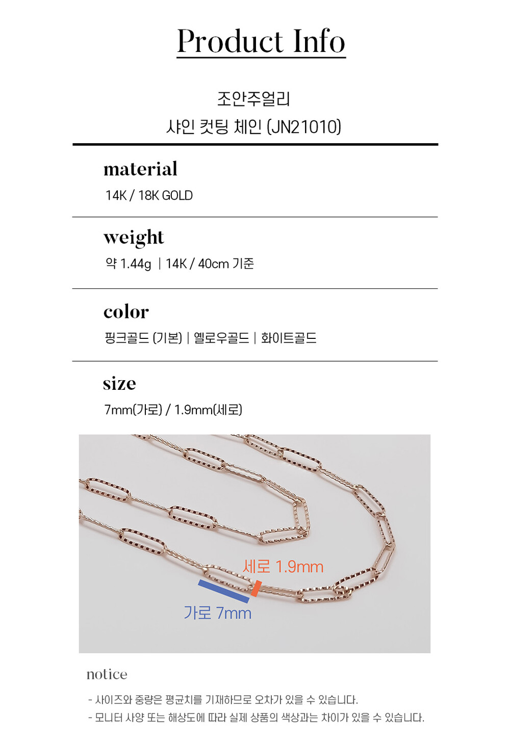 빛을 반사시키는 느낌이 남달리 화사한 체인이에요!