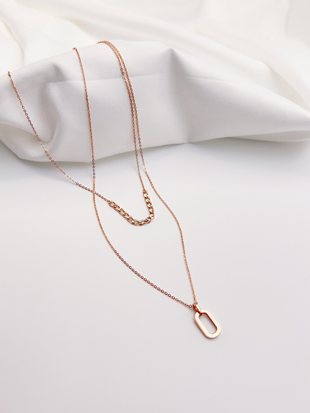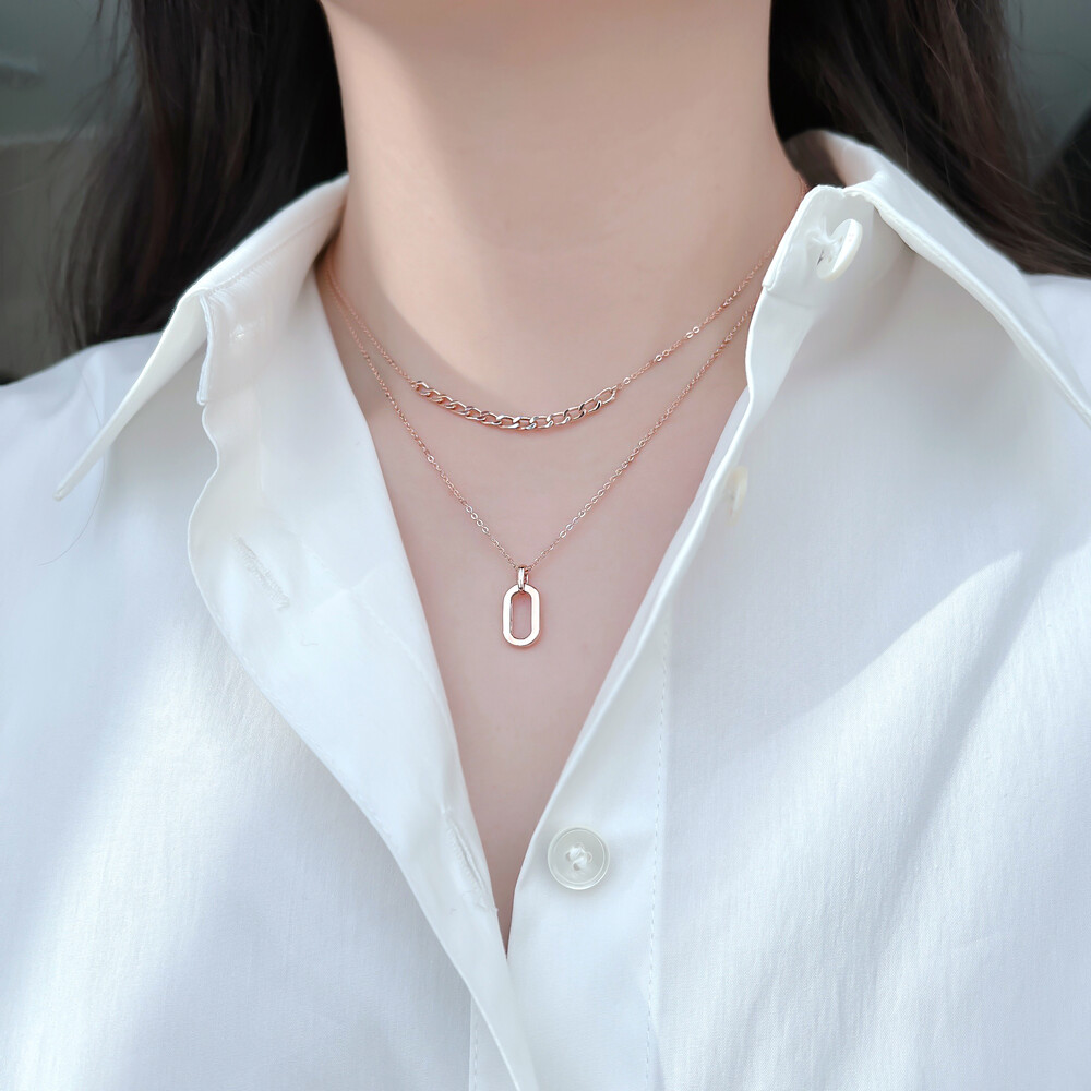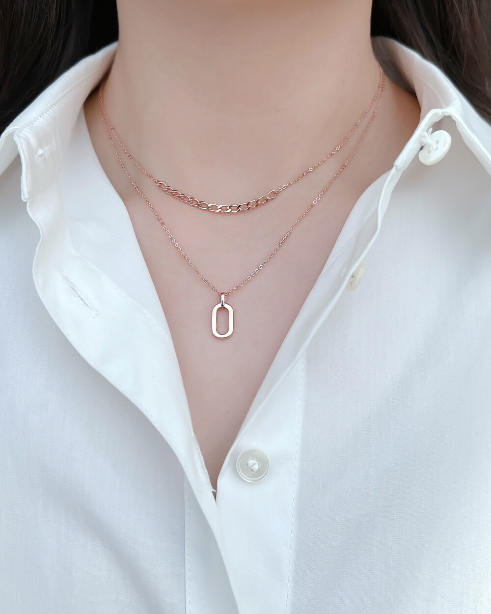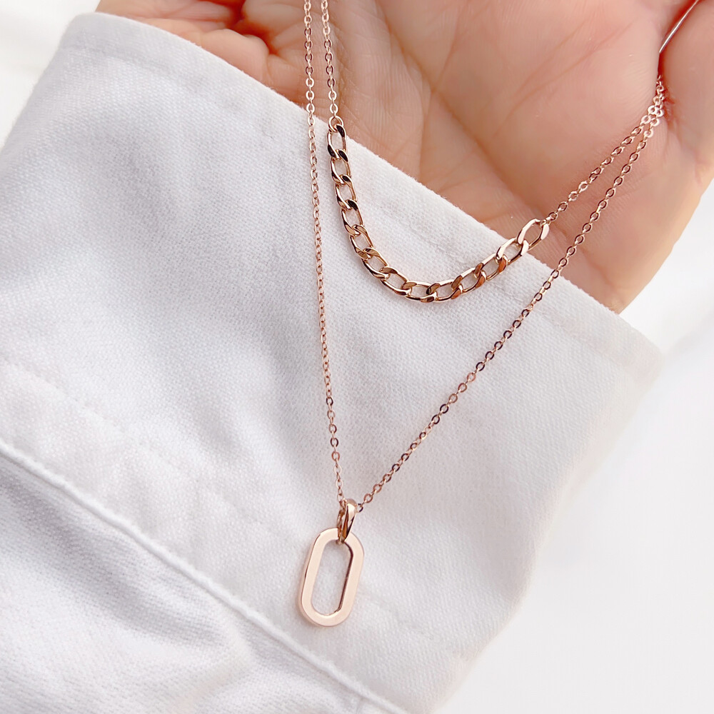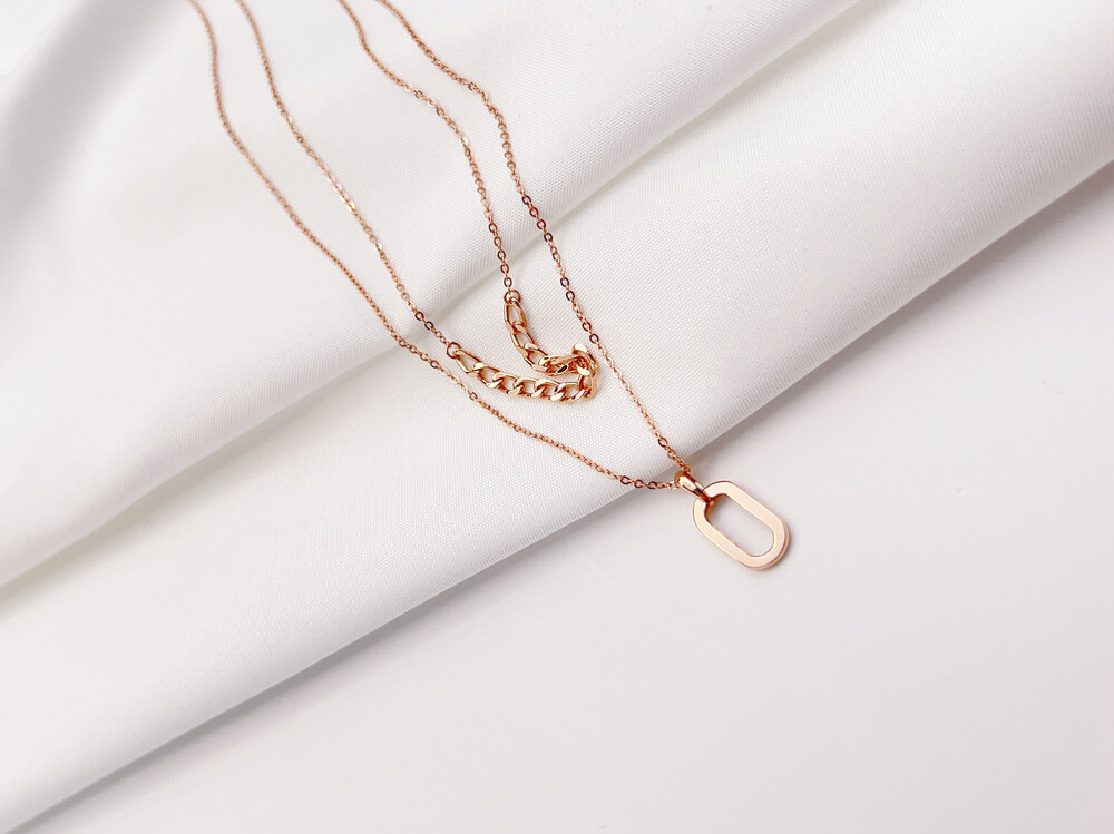 긴체인에는 깔끔한 타원형의 펜던트를 매치하였고