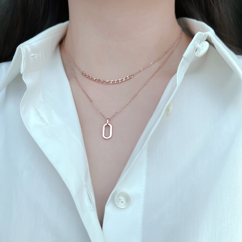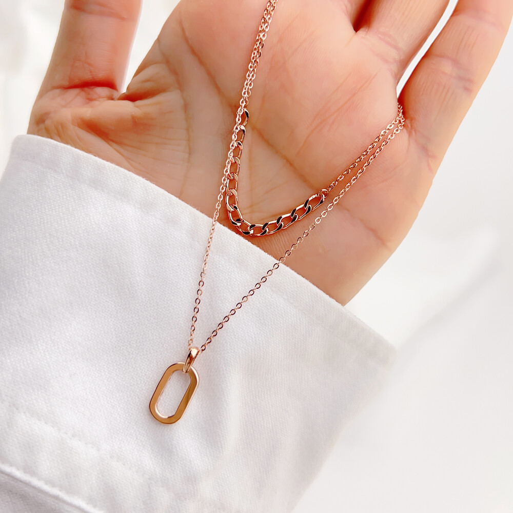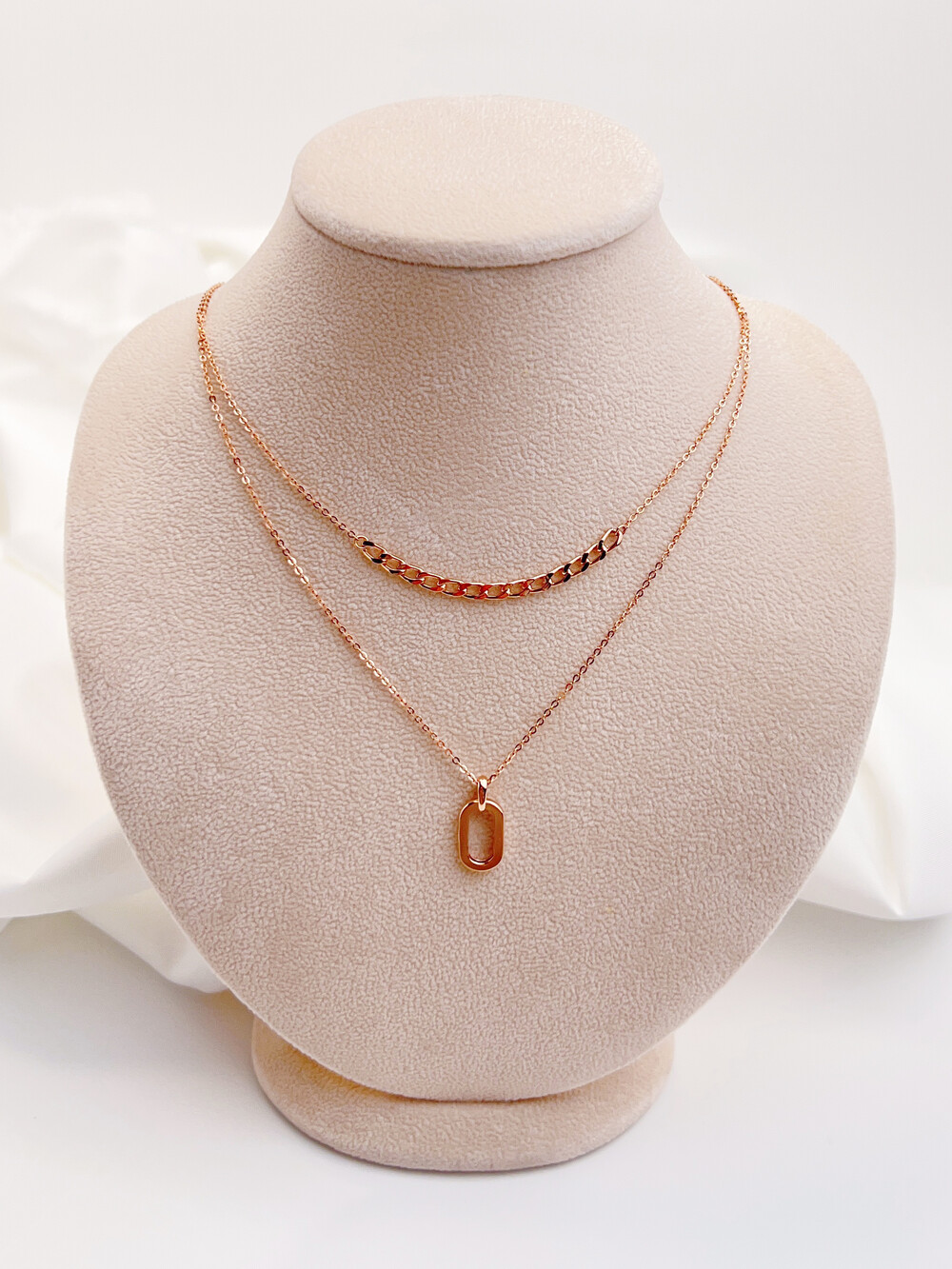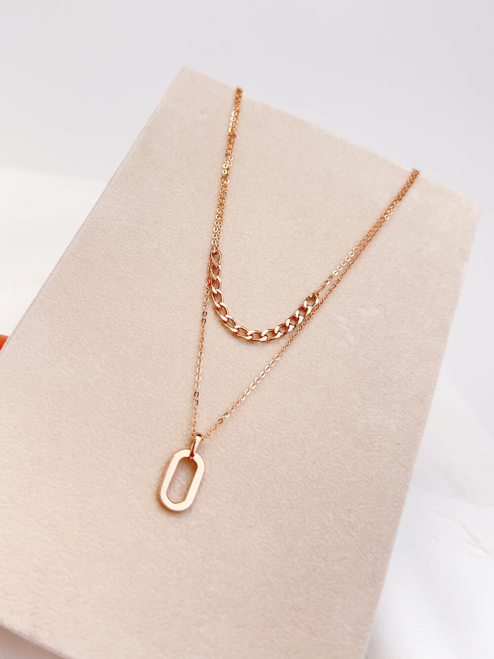 긴체인에는 깔끔한 타원형의 펜던트를 매치하였고