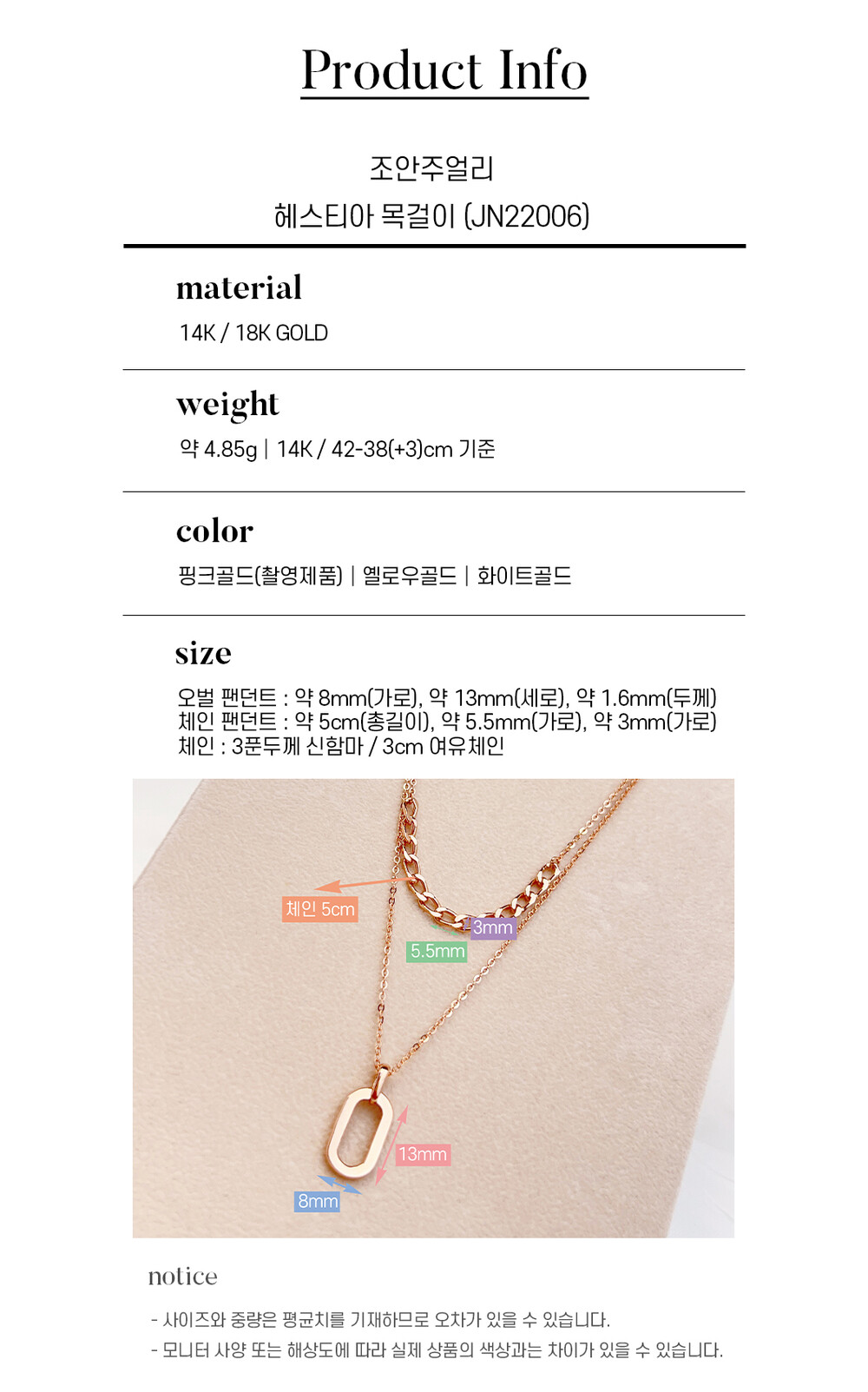 해당 제품은 38/42cm(짧은체인/긴체인)를 착용하였습니다.