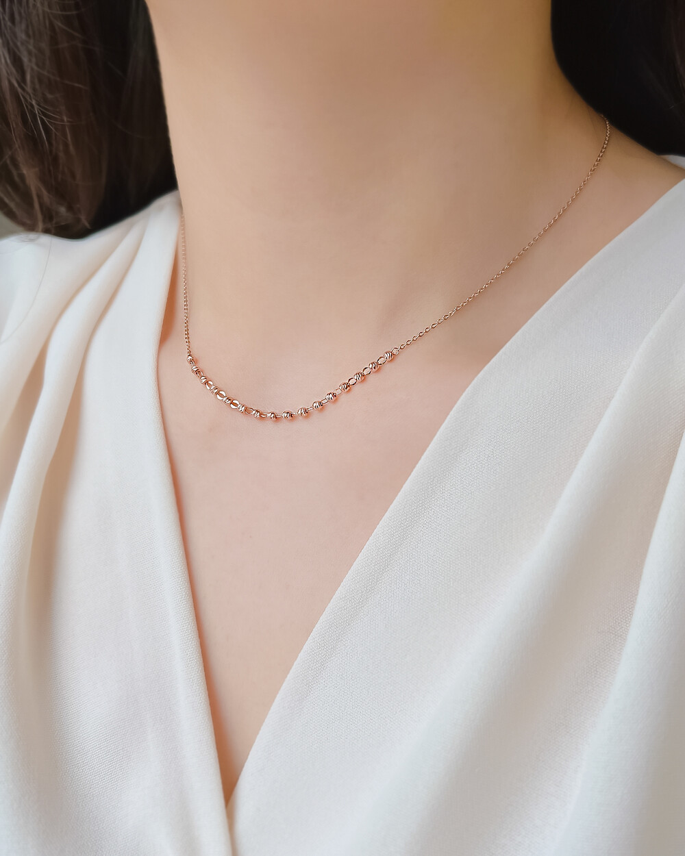길게 착용하기보다는 목에 적당히 핏되도록