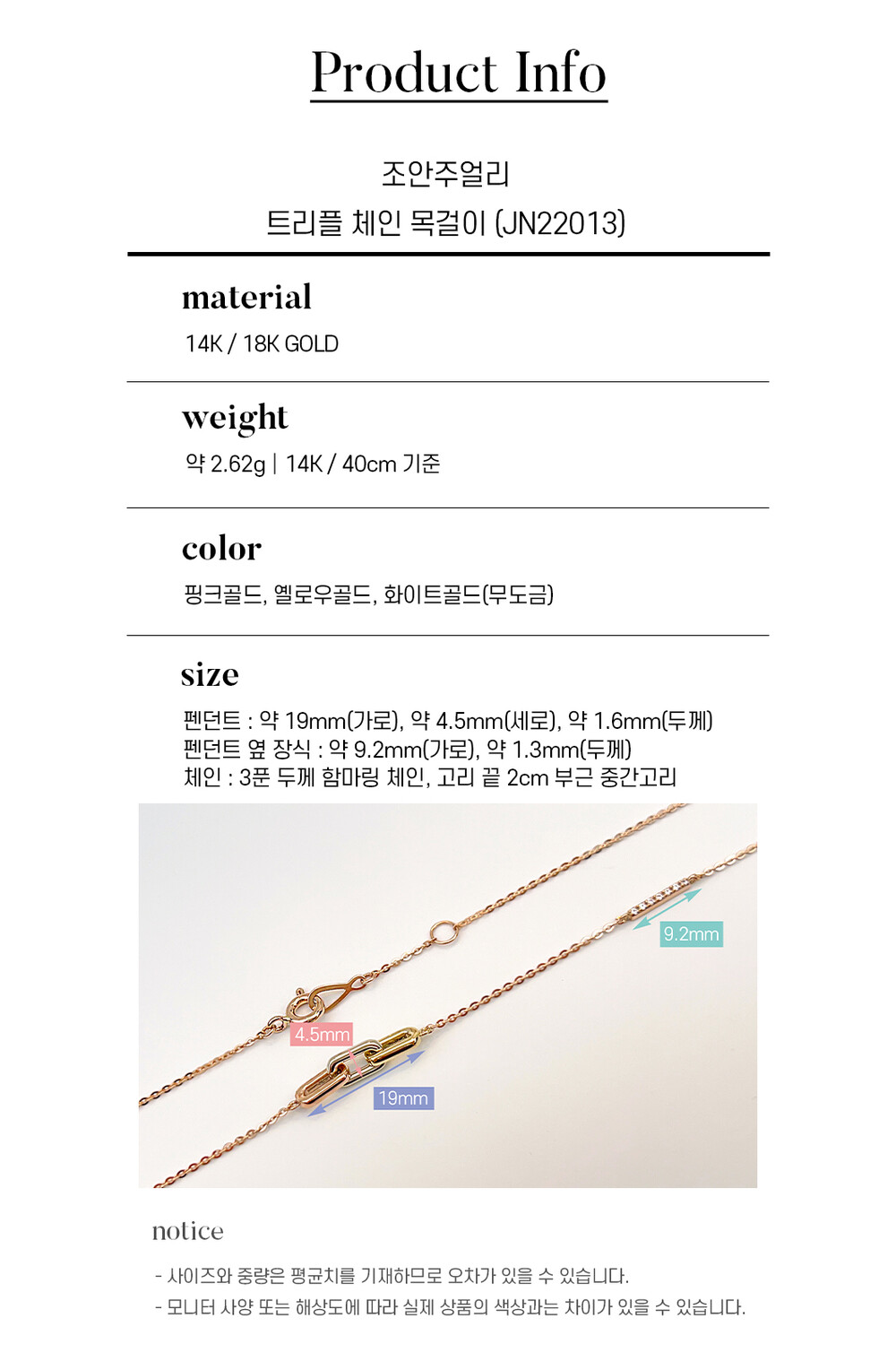 * 체인 : 핑크골드 색상
