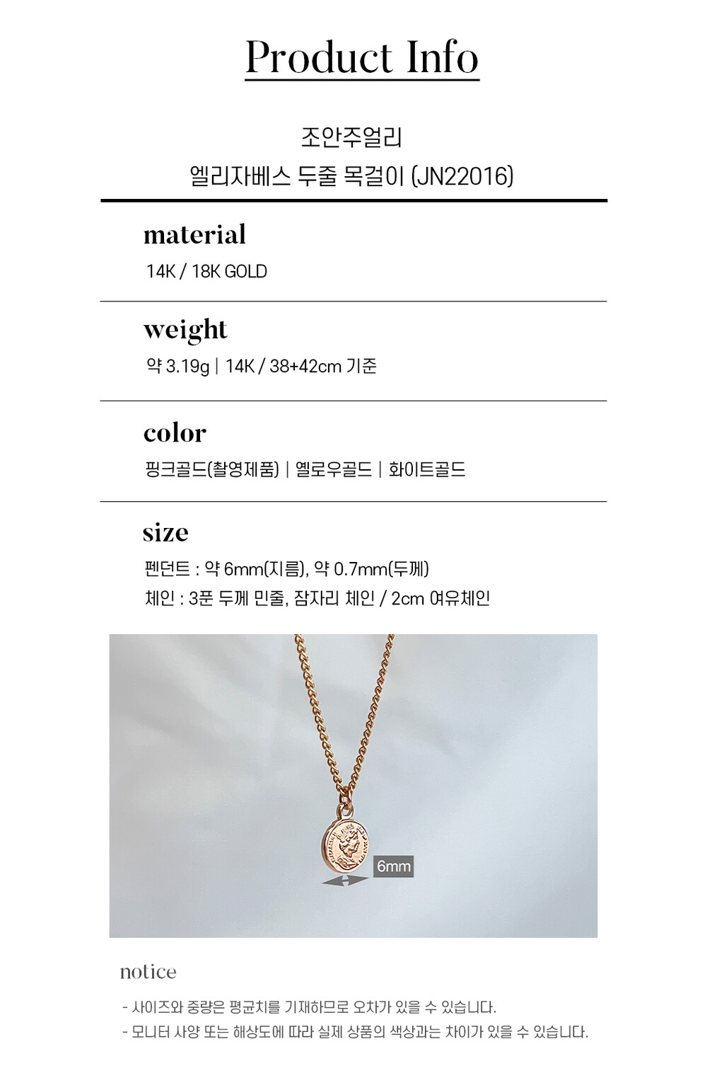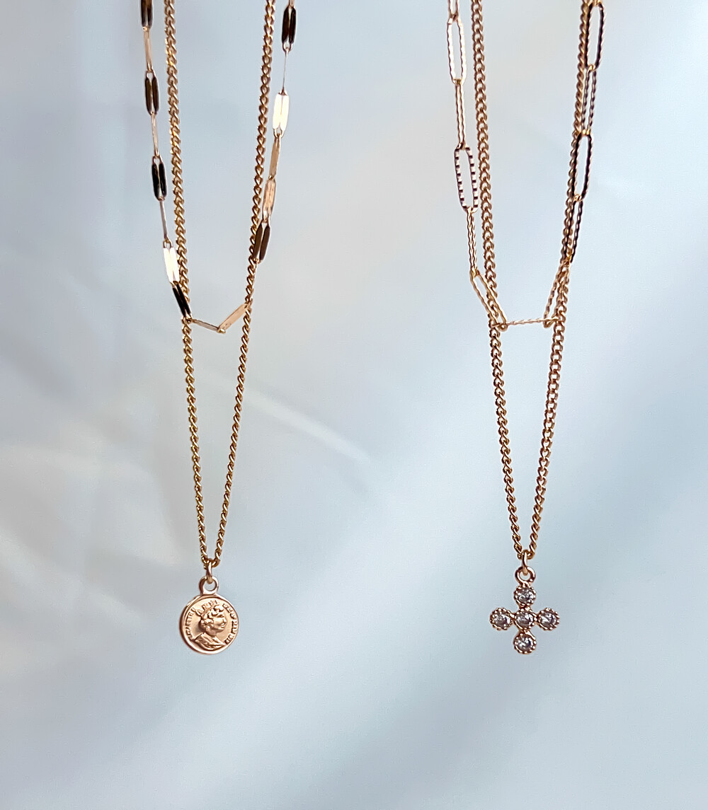 엘리자베스 코인 두줄 목걸이 14k / 18k