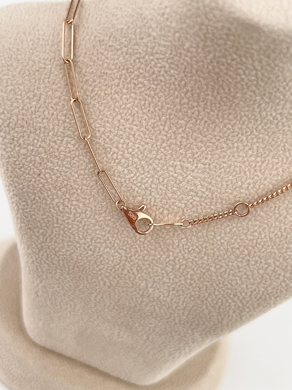 양쪽에 서로 다른 디자인의 체인이 돋보이는