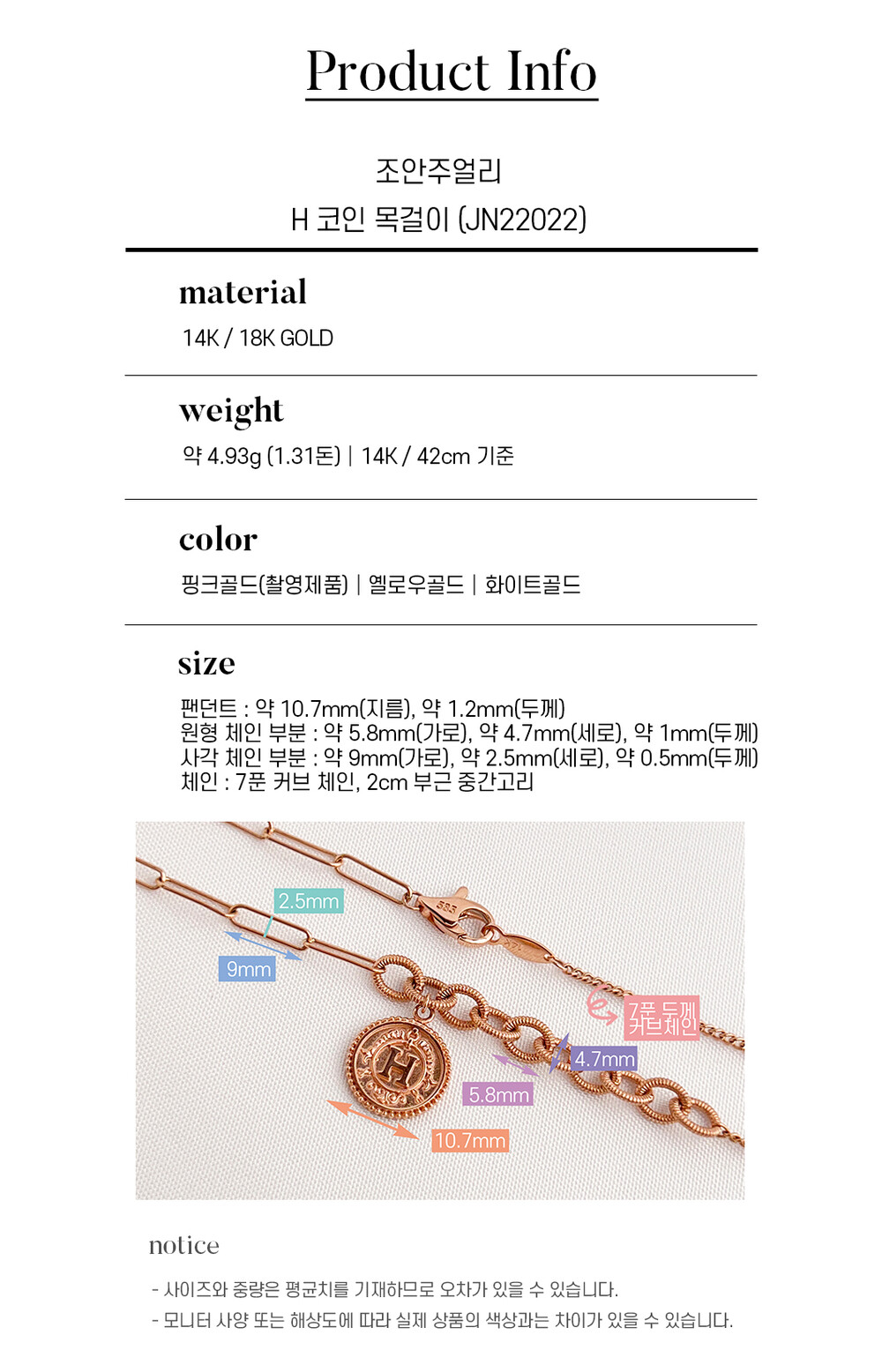 H 코인 목걸이 14K / 18K