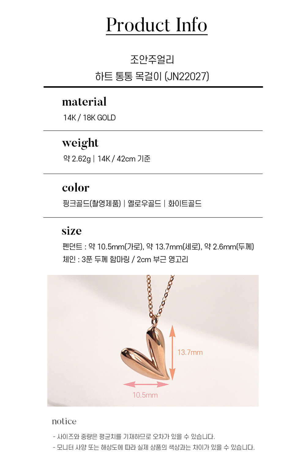 하트 통통 목걸이 14k / 18k