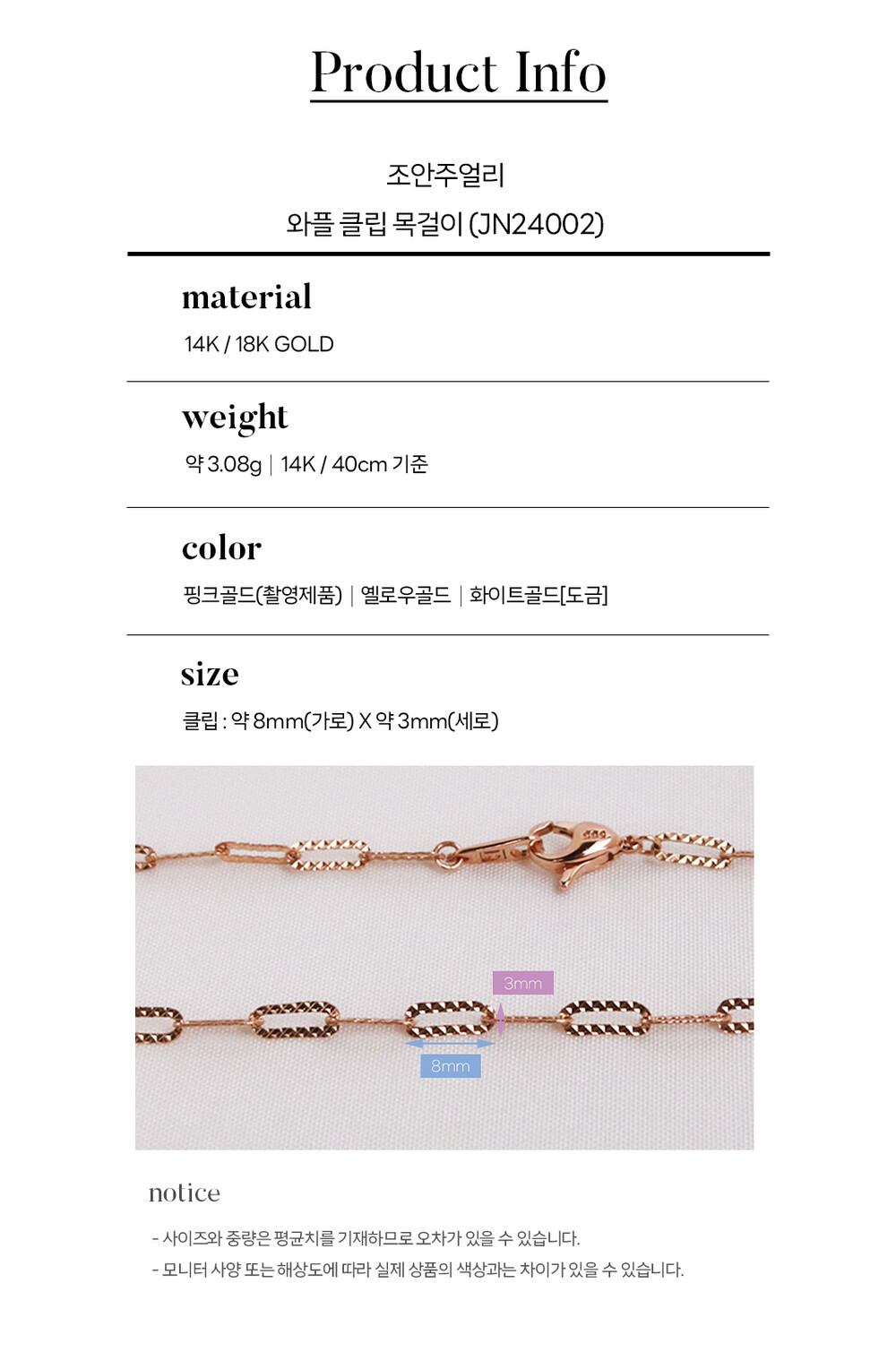 14k(58.5%), 18k(75%) 금 함량을 준수하여 제작되며