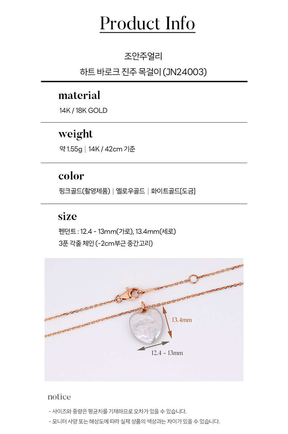 14k(58.5%), 18k(75%) 금 함량을 준수하여 제작되며
