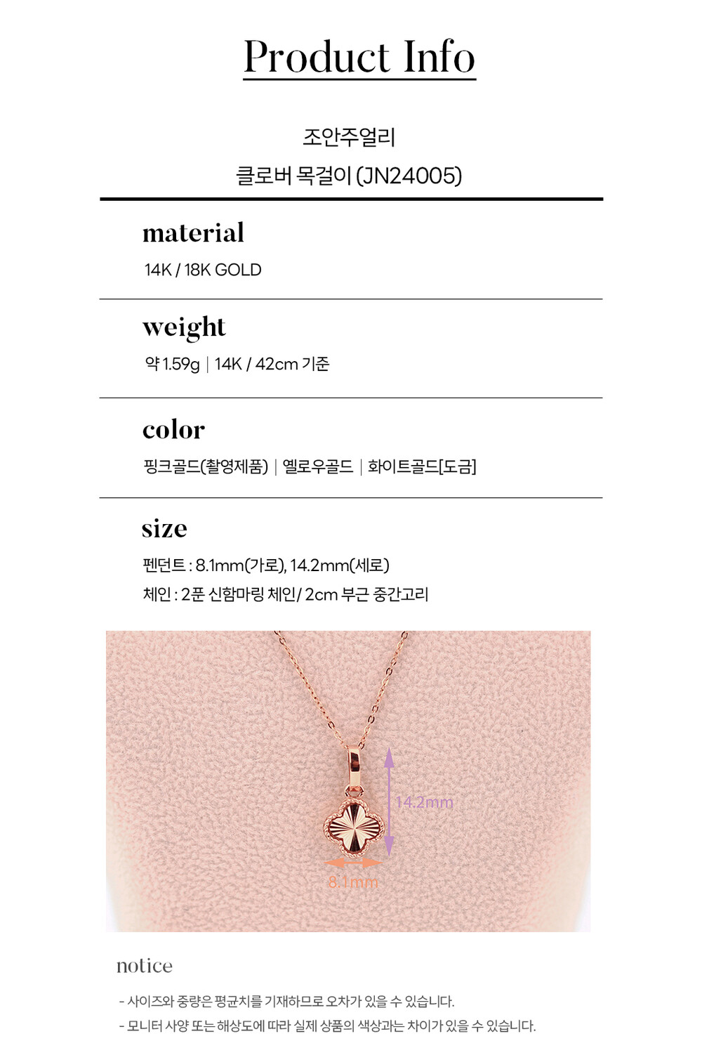 14k(58.5%), 18k(75%) 금 함량을 준수하여 제작되며
