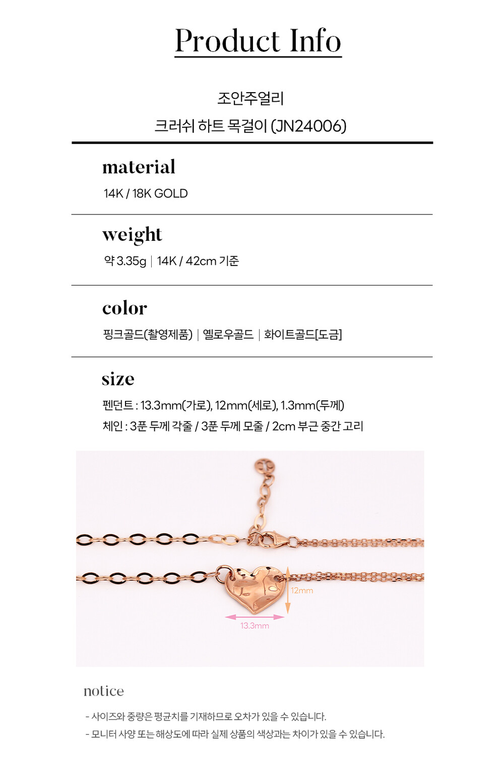 14k(58.5%), 18k(75%) 금 함량을 준수하여 제작되며