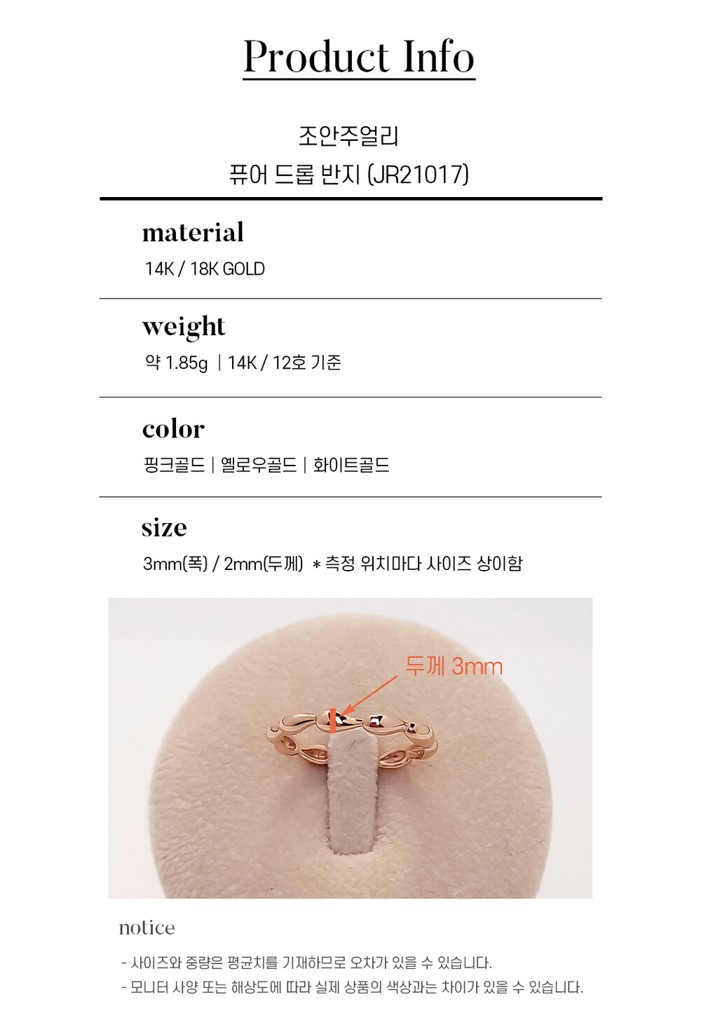 퓨어 드롭 반지 14k / 18k