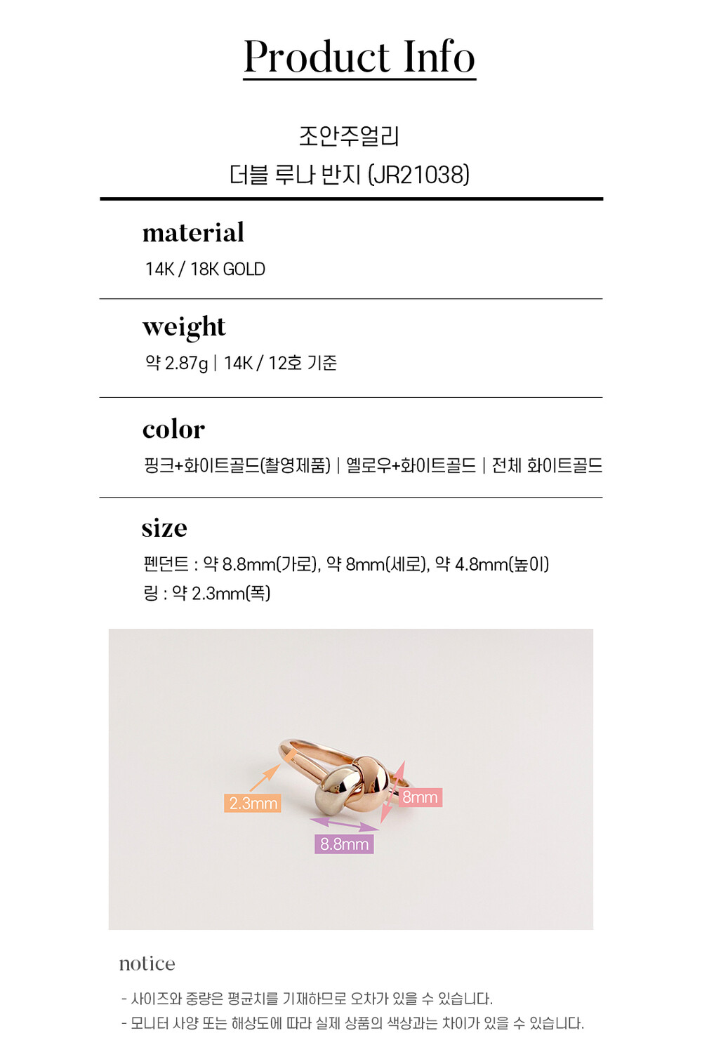 조안주얼리의 제품은 14k(58.5%), 18k(75%) 금 함량을 준수하여 제작되며