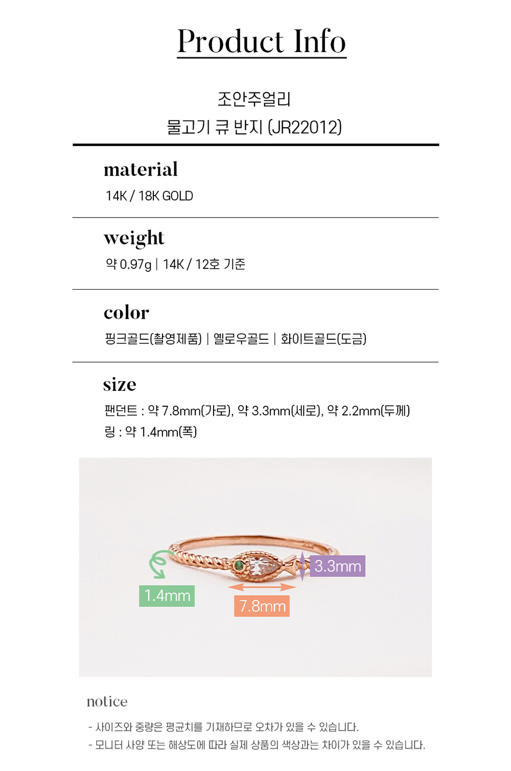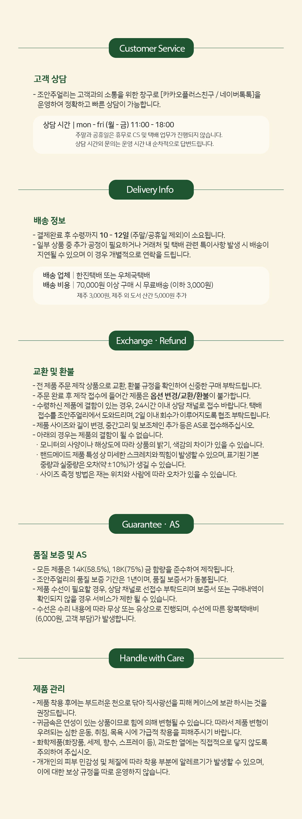조안주얼리의 제품은 14k(58.5%), 18k(75%) 금 함량을 준수하여 제작되며
