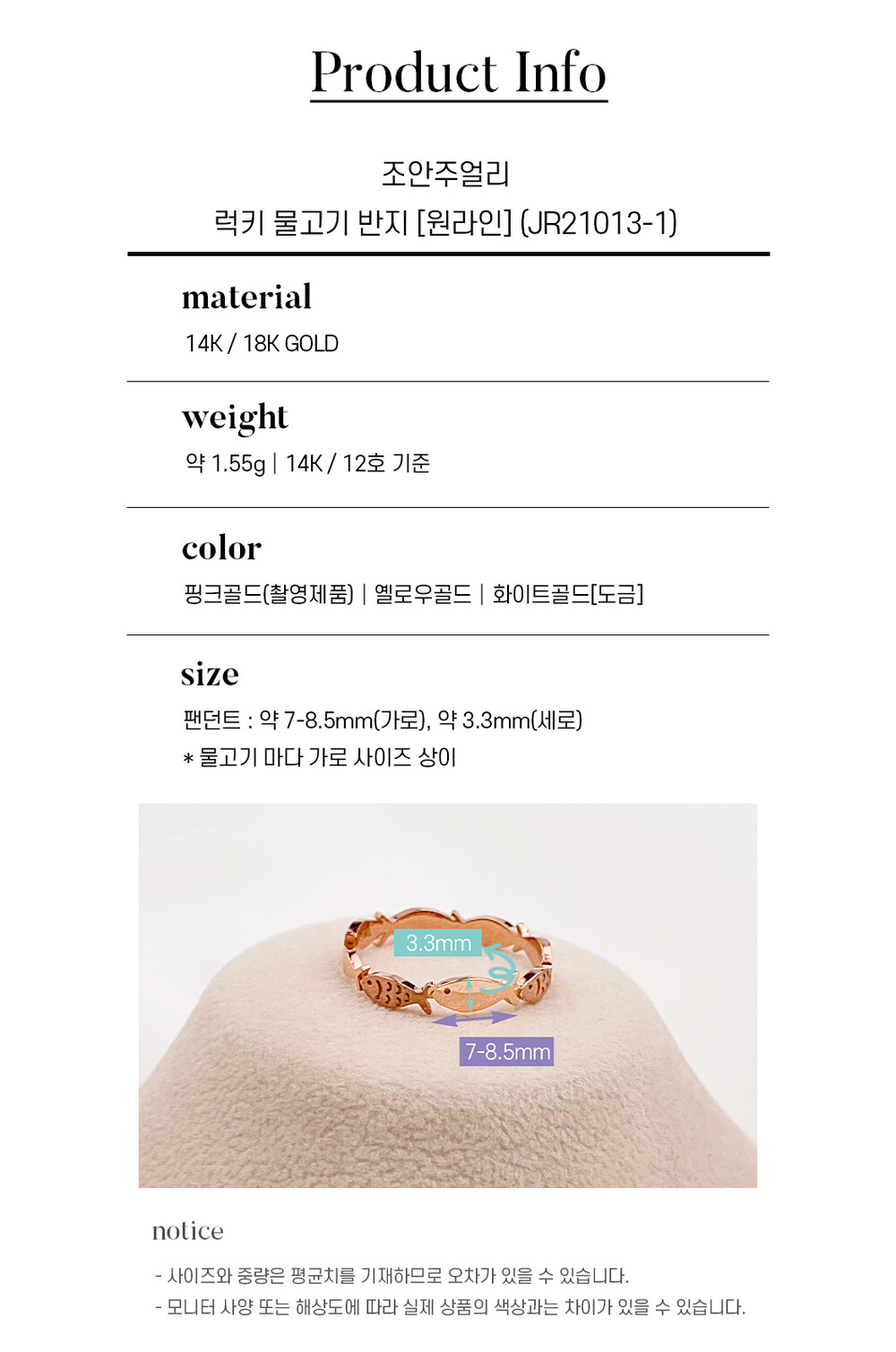 조안주얼리의 제품은 14k(58.5%), 18k(75%) 금 함량을 준수하여 제작되며
