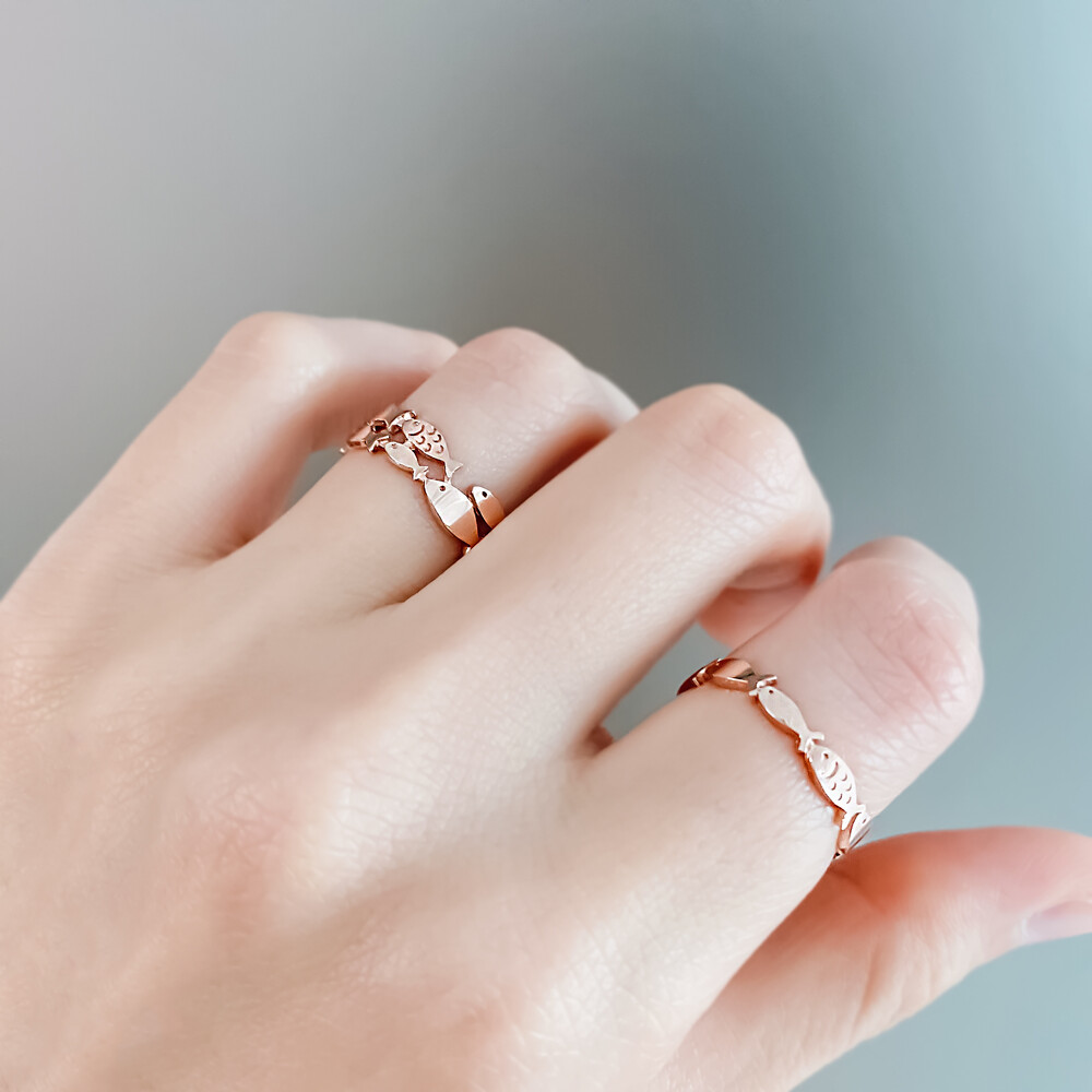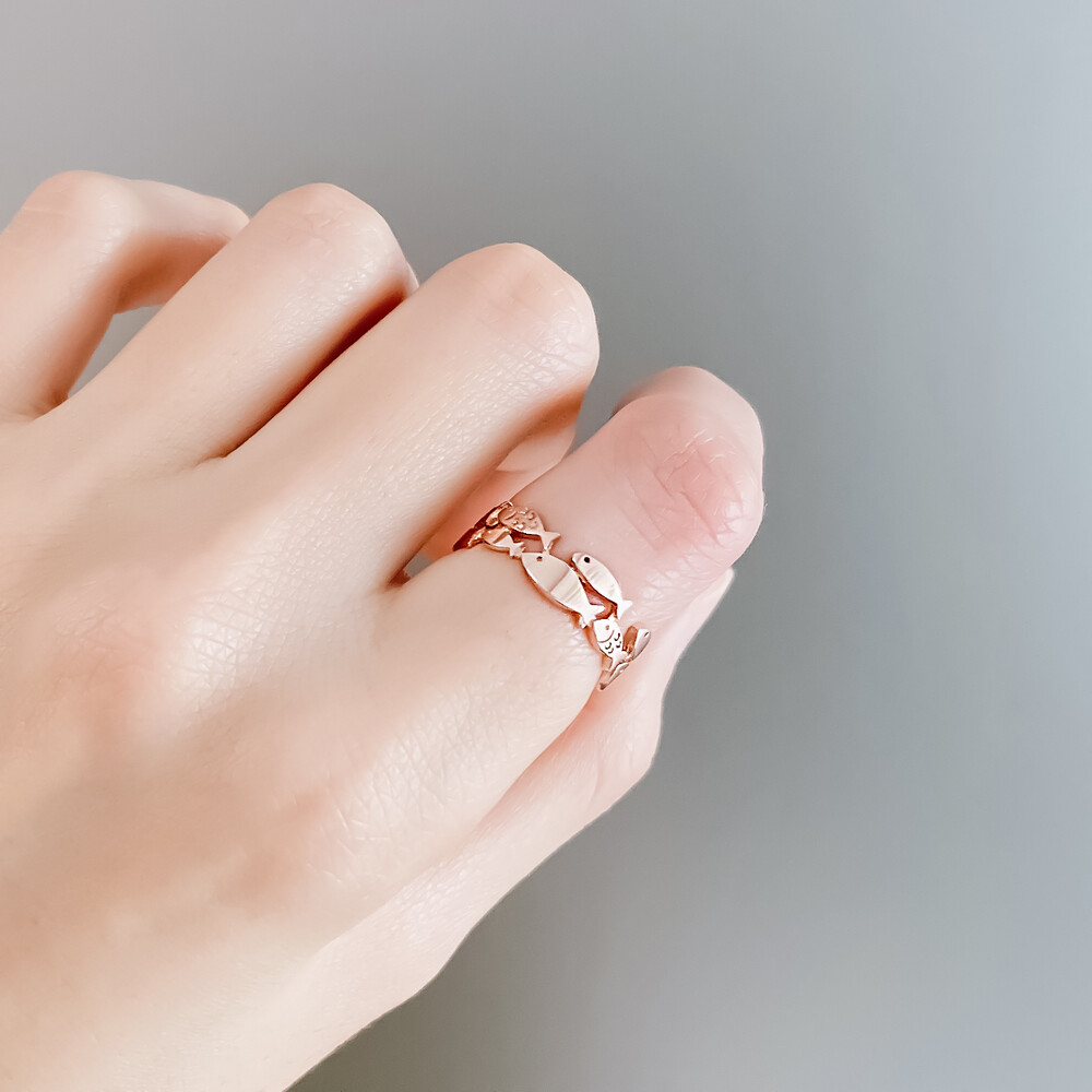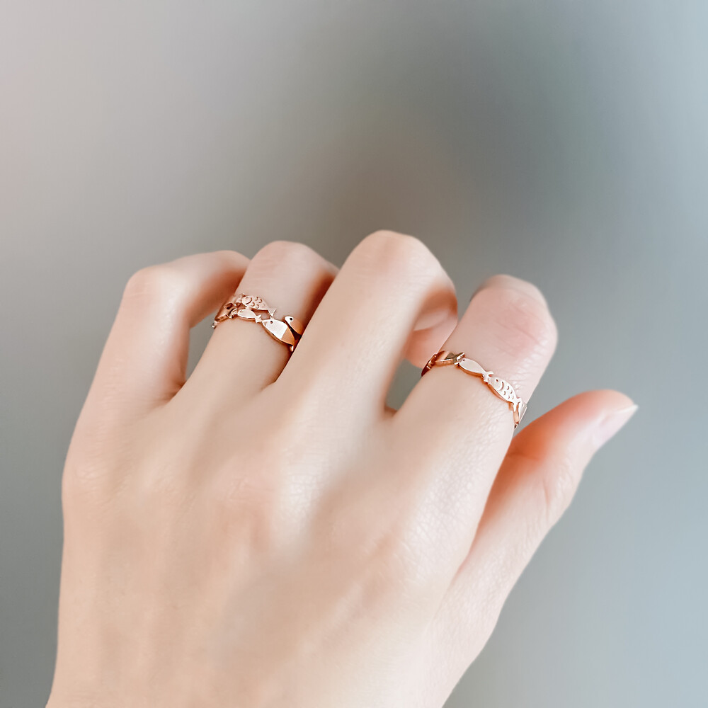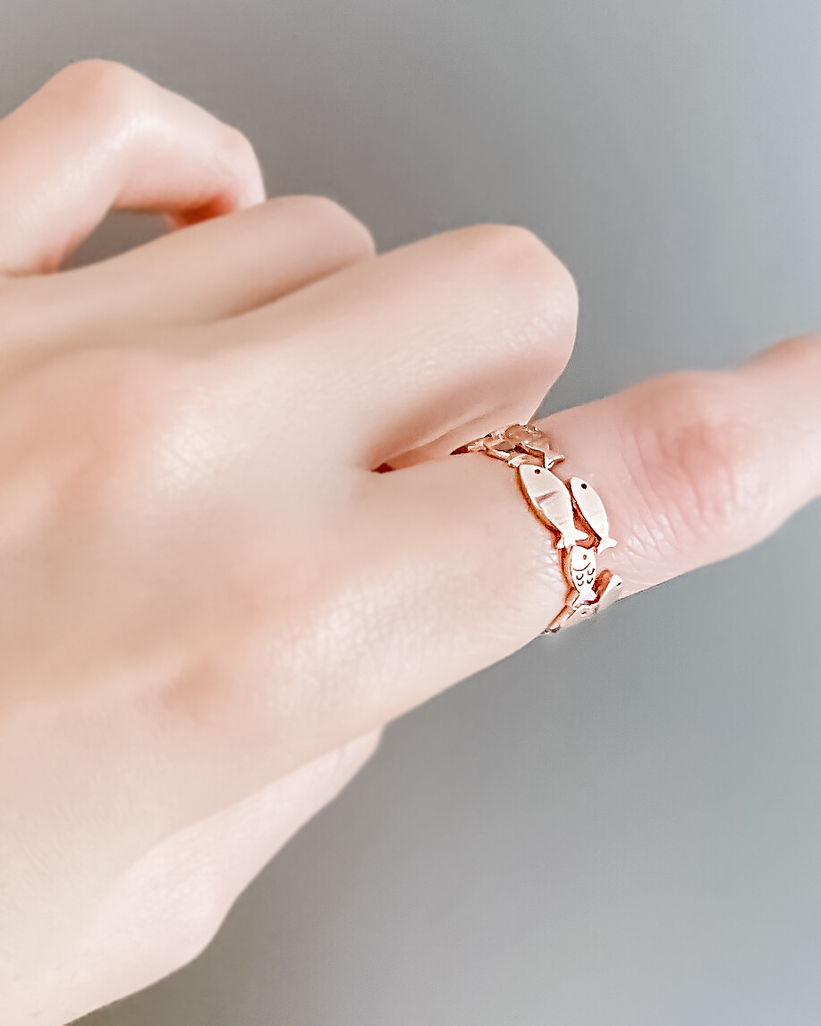 이 반지는 물고기가 떼를 이룬 디자인으로