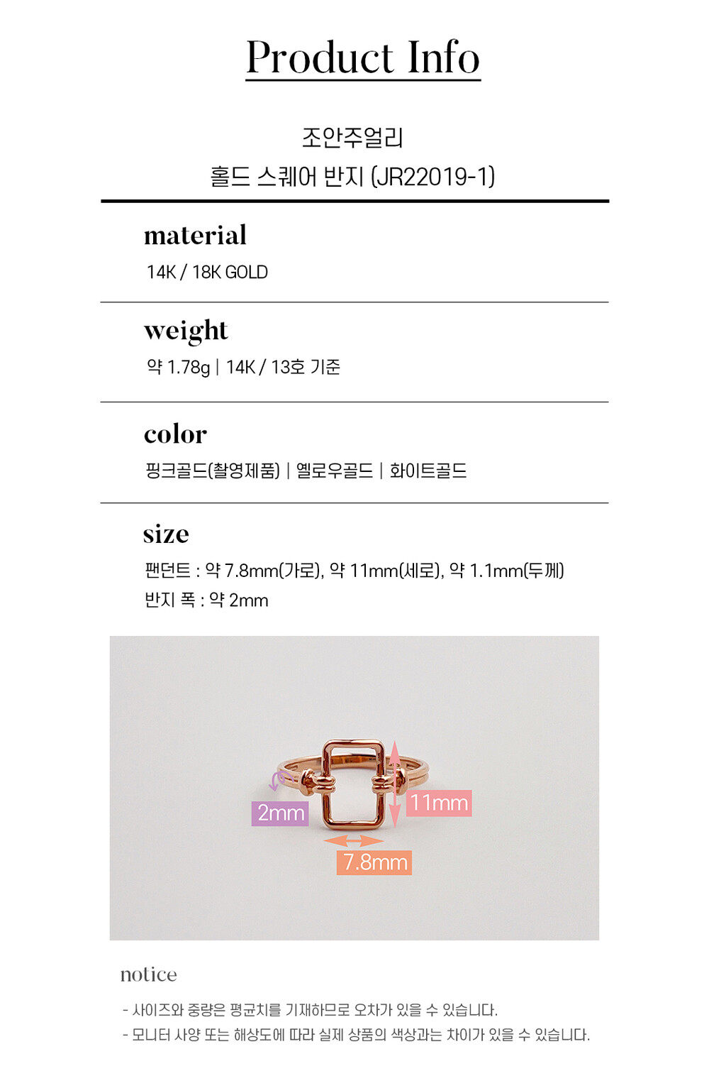 조안주얼리의 제품은 14k(58.5%), 18k(75%) 금 함량을 준수하여 제작되며