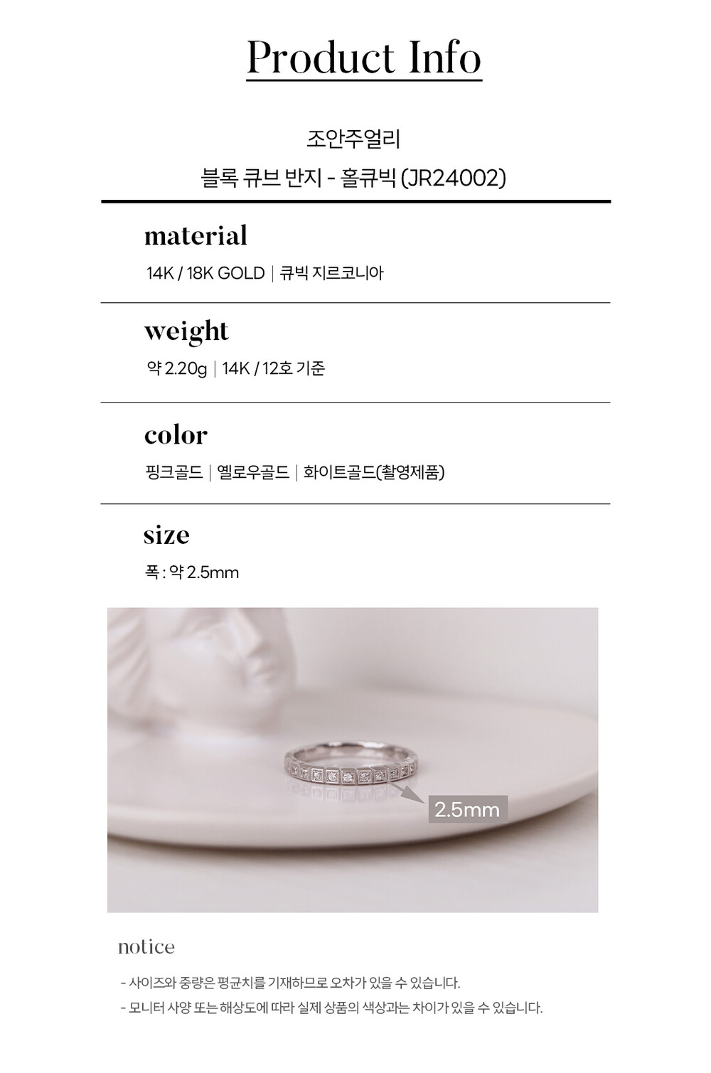 블록 큐브 반지 - 홀큐빅 14K / 18K