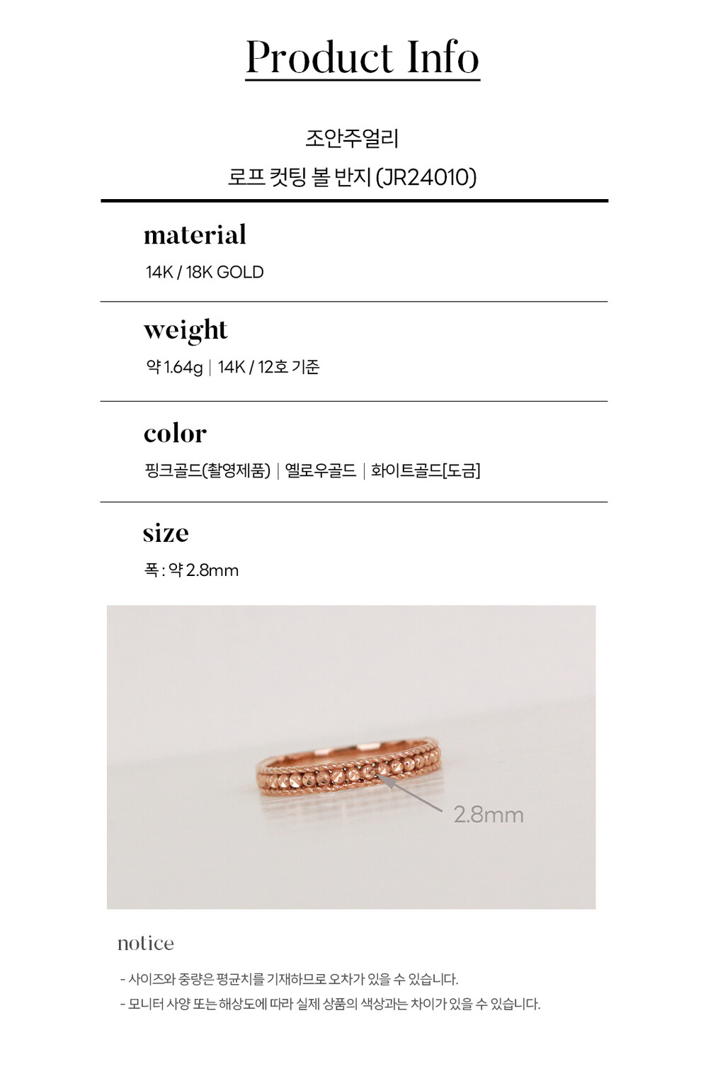 14k(58.5%), 18k(75%) 금 함량을 준수하여 제작되며