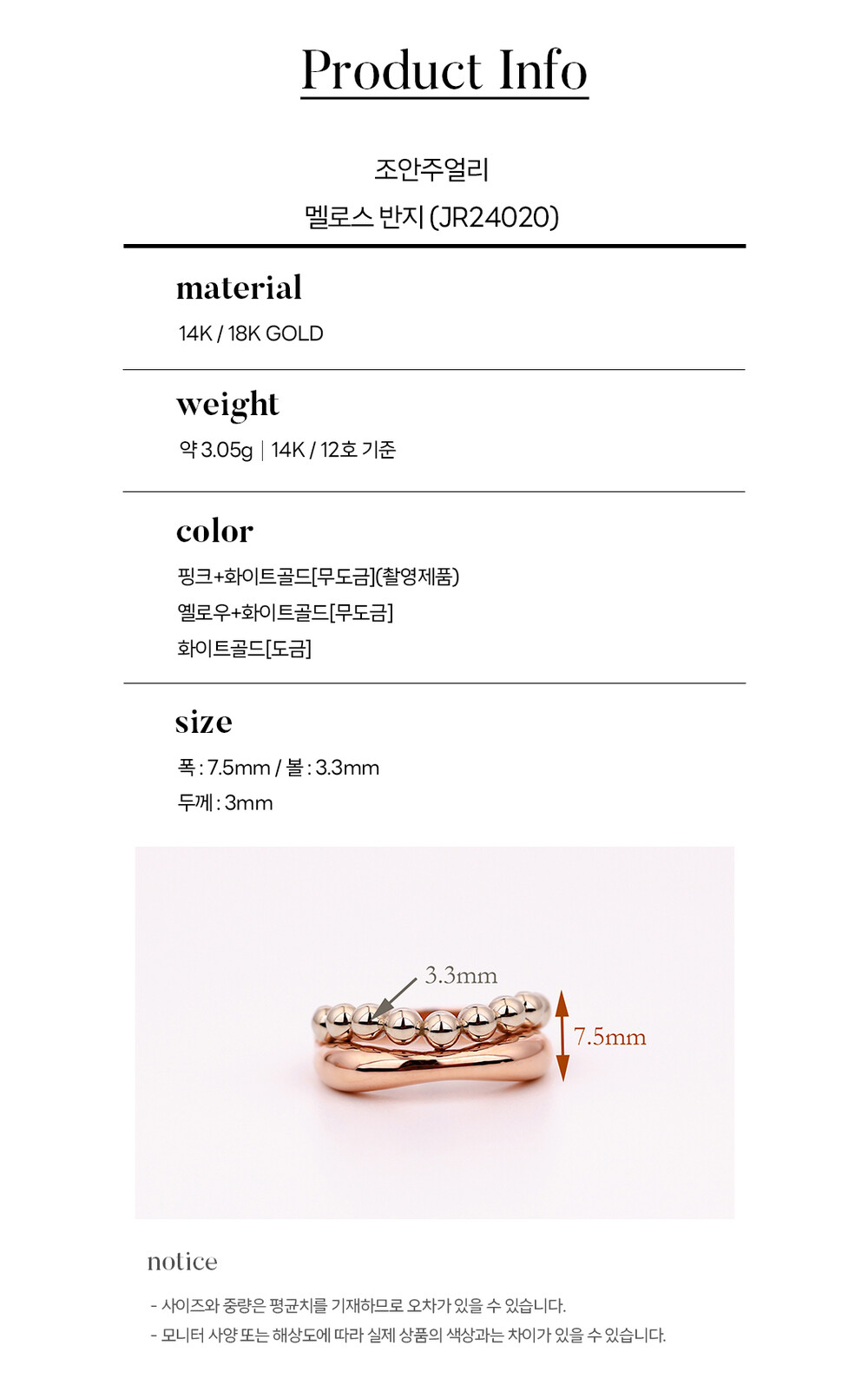 14k(58.5%), 18k(75%) 금 함량을 준수하여 제작되며
